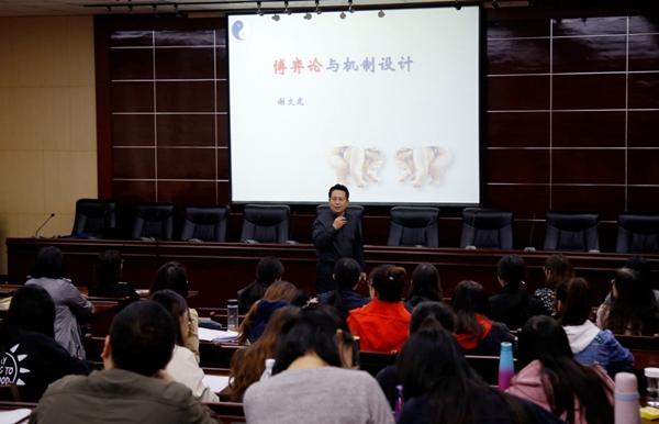 報(bào)告會(huì)由經(jīng)濟(jì)管理學(xué)院院長(zhǎng)王君萍主持,全校100余名師生到場(chǎng)聆聽(tīng)了報(bào)告。謝文虎教授從“和尚分粥博弈”“礦難博弈”“獵人博弈”三個(gè)經(jīng)典的博弈案例入手,向師生闡述了博弈論的基本概念,詳細(xì)講解了“納什均衡”“帕累托效率”“帕累托最優(yōu)”等經(jīng)濟(jì)學(xué)概念,并從“通俗易懂平話博弈論”“深入淺出解讀博弈論”“致力實(shí)踐運(yùn)用博弈論”三個(gè)方面,全面介紹了博弈論與機(jī)制設(shè)計(jì)理論的內(nèi)在邏輯關(guān)系。謝教授結(jié)合多年豐富的工作經(jīng)驗(yàn)和淵博的知識(shí),對(duì)“機(jī)制設(shè)計(jì)與管理實(shí)踐”提出了獨(dú)到的見(jiàn)解,語(yǔ)言平實(shí)風(fēng)趣,案例生動(dòng)豐富,受到了師生們的廣泛好評(píng)。