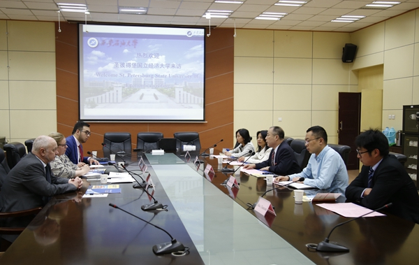 陳軍斌副校長對(duì)圣彼得堡國立經(jīng)濟(jì)大學(xué)代表團(tuán)來訪表示歡迎,隨后從歷史沿革、師生規(guī)模、科研特色、專業(yè)設(shè)置、校企合作、國際交流等方面對(duì)我校進(jìn)行了介紹。他表示,當(dāng)天上午在2018絲綢之路教育合作交流會(huì)上簽署的合作協(xié)議是兩校合作的良好開端,希望接下來尋找兩校進(jìn)一步合作的契合點(diǎn),開展校際合作交流和學(xué)生互換項(xiàng)目。