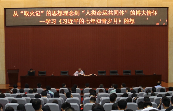 5月3日下午,學(xué)校邀請陜西省作家協(xié)會主席團(tuán)顧問曹谷溪先生來校作了題為《從“取火記”的思想理念到“人類命運共同體”的博大情懷——學(xué)習(xí)< 習(xí)近平的七年知青歲月>隨想》的專題報告。全體學(xué)工干部和學(xué)生代表400余人聆聽了報告。
