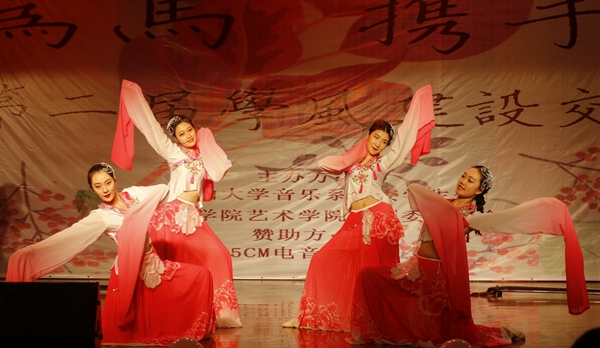 晚會(huì)首先由西安文理學(xué)院器樂(lè)合奏《奇跡》拉開序幕,讓人們遠(yuǎn)離都市喧囂,傾聽(tīng)自然的旋律;我校學(xué)生深情演唱的《絨花》,歌頌了英勇偉大的革命先烈,抒發(fā)了對(duì)他們的真摯緬懷;由我校何云老師編排的古典舞《古韻琴聲》優(yōu)美婉約,古典大氣;《愛(ài)情廢柴》《All I ask of you》等歌曲旋律優(yōu)美,節(jié)奏歡快;街舞《come baby come》、T臺(tái)秀、大合唱《友誼天長(zhǎng)地久》將晚會(huì)推向了高潮,晚會(huì)在全場(chǎng)同學(xué)的掌聲中圓滿落下帷幕。