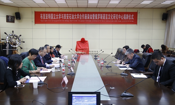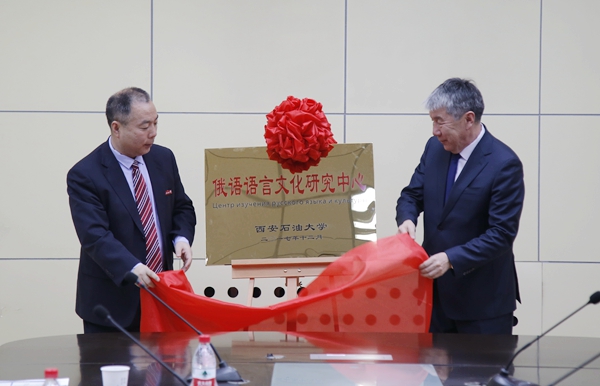 哈辛諾夫副校長在致辭中感謝西安石油大學(xué)精心組織的接待工作,并簡(jiǎn)要介紹了布里亞特國立大學(xué)的基本情況。隨后,陳軍斌副校長和哈辛諾夫副校長共同為俄羅斯語言文化研究中心揭牌。