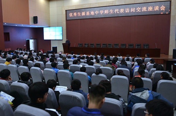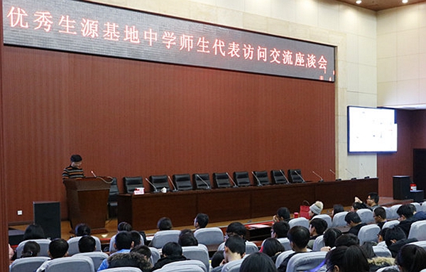 交流座談會在弘石學術(shù)報告廳召開。教務處處長徐學利對華清中學來訪師生表示歡迎,對華清中學多年來為我校輸送優(yōu)秀學子表示感謝,并介紹了我校的發(fā)展歷程、目標定位、辦學特色、學科優(yōu)勢、校園文化、本科招生等方面情況。華清中學教研室主任朱亞軍老師結(jié)合中學生職業(yè)生涯規(guī)劃課程介紹了此次來訪參觀的意義,并向我校贈送了錦旗。
