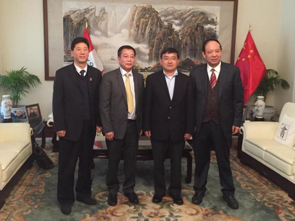 中國(guó)駐秘魯大使賈桂德與代表團(tuán)領(lǐng)導(dǎo)合影