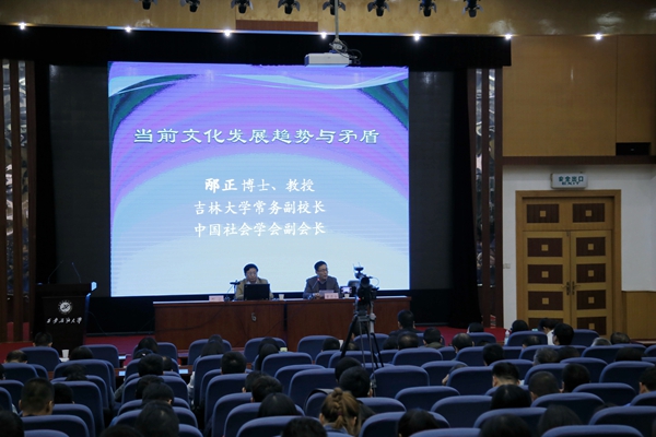 10月18日下午,吉林大學(xué)常務(wù)副校長、博士生導(dǎo)師,中國社會(huì)學(xué)會(huì)副會(huì)長邴正教授應(yīng)我校邀請(qǐng),在雁塔校區(qū)學(xué)術(shù)報(bào)告廳為我校師生作了題為《當(dāng)代文化發(fā)展趨勢與矛盾》的學(xué)術(shù)報(bào)告。學(xué)校處、科級(jí)干部,人文學(xué)院、馬克思主義學(xué)院教師,研究生代表近300人參加了報(bào)告會(huì)。報(bào)告會(huì)由校黨委副書記雷西合主持。