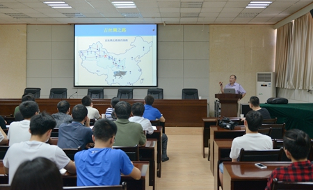 張洪泉教授在報告中與師生分享了他持續(xù)關注并潛心研究的羅布泊對氣候和生態(tài)影響的研究成果,提出了近50年來中國西北戈壁灘周圍生態(tài)環(huán)境惡化是由于羅布泊的消失以及塔里木盆地內(nèi)水體持續(xù)西移造成的觀點。他運用大量實例、數(shù)據(jù),闡述了羅布泊從古至今環(huán)境變遷的原因和機理,并提出了恢復羅布泊、改善大西北生態(tài)環(huán)境的具體方案。張洪泉教授認真嚴謹?shù)目蒲芯?、談古論今的講授風格,贏得了我校師生的一致好評。