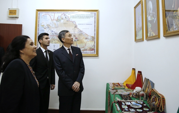 揭牌儀式后,學(xué)校與土庫曼斯坦駐華大使館舉行了合作座談會。雙方就發(fā)揮土庫曼斯坦中心平臺作用,落實和推進學(xué)校與土庫曼斯坦高校合作以及土庫曼斯坦中心后續(xù)建設(shè)工作進行了深入探討。雙方表示,將積極推進落實互派留學(xué)生、教師互訪和講學(xué)、土庫曼斯坦能源展、土庫曼斯坦高??疾旖涣?、申請土庫曼斯坦總統(tǒng)獎學(xué)金等工作。