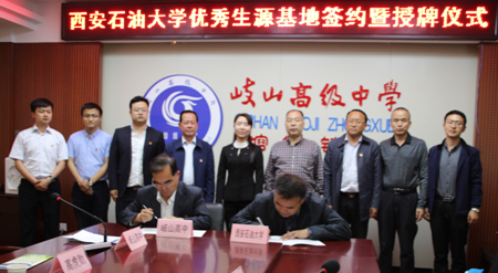 5月9日,陳軍斌副校長(zhǎng)及教務(wù)處、機(jī)械工程學(xué)院負(fù)責(zé)人一行赴寶雞市岐山縣,先后在岐山高級(jí)中學(xué)、蔡家坡高級(jí)中學(xué)、益店高級(jí)中學(xué)舉行“西安石油大學(xué)優(yōu)秀生源基地”簽約授牌儀式。岐山縣委副書記高清苗、團(tuán)縣委書記王釗、縣教體局局長(zhǎng)楊周雅及三所中學(xué)校長(zhǎng)參加了授牌簽約儀式。