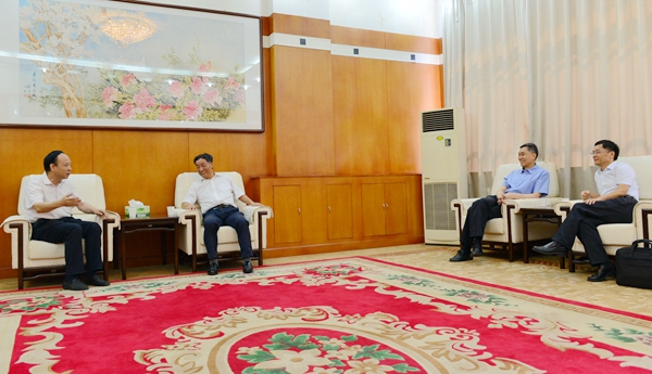 賽云秀書記(左一)、屈展校長(右二)與孫一平書記(左二)、張烈輝副校長(右一)親切交流