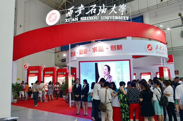 我校展區(qū)位于曲江國(guó)際會(huì)展中心核心展區(qū)A館。展臺(tái)設(shè)計(jì)采用彩色圖文展板、實(shí)物展品、LED顯示、宣傳彩頁(yè)等多種形式,對(duì)我校65年來辦學(xué)歷史,尤其是近年來我校在教學(xué)科研、人才培養(yǎng)、國(guó)際教育交流與合作等方面取得的成績(jī)進(jìn)行了全方位展示,突出了石油石化特色。為做好招生咨詢服務(wù),各院(系)教師代表、招生辦公室工作人員、學(xué)生志愿者紛紛為前來咨詢的家長(zhǎng)和學(xué)生提供信息咨詢服務(wù)。