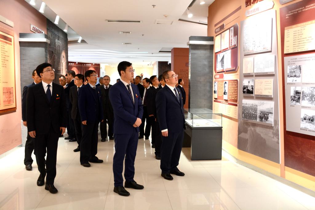 隨后,常江、王進(jìn)富等來到校史館,重溫老一輩無產(chǎn)階級革命家對學(xué)校的親切關(guān)懷,回顧篳路藍(lán)縷、開拓進(jìn)取的建校辦學(xué)歷史。在校史館上半展區(qū),展示了在習(xí)仲勛等老一輩無產(chǎn)階級革命家關(guān)懷下,1951年學(xué)校創(chuàng)辦的歷史。秉承“艱苦創(chuàng)業(yè)、興油報(bào)國”的辦學(xué)理念,學(xué)校堅(jiān)定起步,砥礪前行。50年代末,學(xué)校開啟本科辦學(xué)歷程,廣大師生不辱使命、勵精圖治,各項(xiàng)事業(yè)取得了較快發(fā)展。即使在學(xué)校遭受重創(chuàng)、停辦改廠期間,依然堅(jiān)持科技攻關(guān),產(chǎn)生了一批科學(xué)研究和技術(shù)攻關(guān)成果。80年代初,學(xué)校弦歌復(fù)響、絳帳重開,邁入新的發(fā)展時(shí)期,并凝練形成了“團(tuán)結(jié)、勤奮、求是、創(chuàng)新”八字校風(fēng)。全體同志透過一個(gè)個(gè)展板、一件件歷史實(shí)物,深刻感悟?qū)W校厚重的歷史積淀、滄桑的辦學(xué)歷程,深切體會前輩們辦學(xué)興教的不易。厚重的歷史提醒全體同志不忘來時(shí)道路的艱辛,務(wù)必牢記初心使命、賡續(xù)紅色血脈。