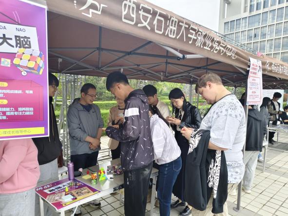 4月7日,陽光柔和,微風(fēng)拂面,恰逢“世界衛(wèi)生日”,我校在鄠邑校區(qū)圖書館南廣場舉辦“油緣會”戶外心理體驗活動暨第九屆“陽光護航”心理育人宣傳季的啟動儀式,樹立“人人享健康共同促健康”理念,同時,12個圍繞“五育并舉促進心理健康”主題設(shè)置的活動展臺也是我校作為教育部油緣成長基地建設(shè)的一次亮相。校黨委副書記張木出席活動?;顒佑蓪W(xué)生工作部(處)(學(xué)生心理成長指導(dǎo)中心)主辦,校醫(yī)院、地球科學(xué)與工程學(xué)院、電子工程學(xué)院、心理委員聯(lián)合協(xié)會、心理協(xié)會共同協(xié)辦。全校500余名師生員工參與體驗。