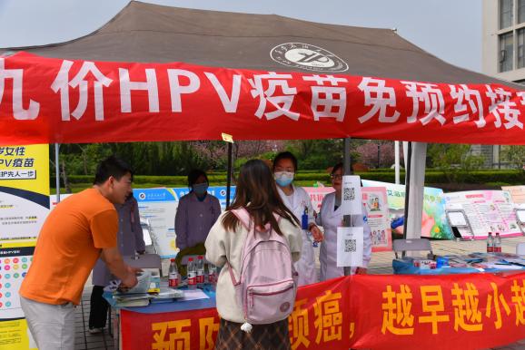校醫(yī)院組織的“安身穩(wěn)心”展臺主題為“健康科普體驗館”,為同學(xué)們進行性知識、防艾知識、接種HPV疫苗等科普教育。