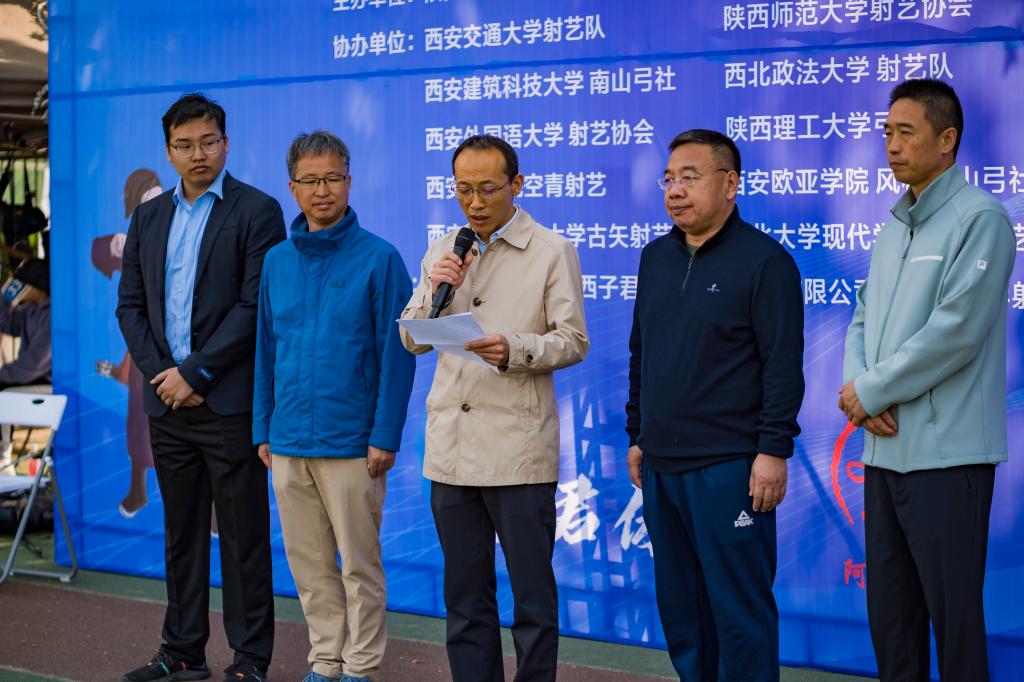 張君濤在致辭中對(duì)所有參賽選手表示誠摯的歡迎和良好的祝愿,向大賽組委會(huì)對(duì)我校體育競(jìng)賽組織能力和服務(wù)保障能力的肯定與認(rèn)可表示感謝。張君濤指出,體育活動(dòng)是學(xué)生生活的重要組成部分,射藝和射箭作為中華傳統(tǒng)體育項(xiàng)目的重要組成部分,不僅對(duì)增強(qiáng)學(xué)生體質(zhì)、提升集中力和意志力有著不可替代的作用,也是培養(yǎng)學(xué)生毅力、精準(zhǔn)度和策略思維的絕佳平臺(tái)。此次承辦全省射箭、射藝大賽,不僅為大學(xué)生提供了一個(gè)展示自我、競(jìng)技拼搏的平臺(tái),也將進(jìn)一步推動(dòng)射藝運(yùn)動(dòng)在校園的普及與發(fā)展。西安石油大學(xué)將繼續(xù)發(fā)揮自身優(yōu)勢(shì),為陜西省大學(xué)生體育事業(yè)作出更大貢獻(xiàn)。