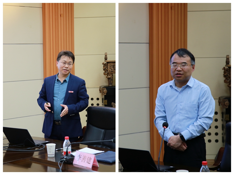 化學(xué)化工學(xué)院副院長李善建介紹了學(xué)校在能源化工科研基地建設(shè)、學(xué)科專業(yè)、科研優(yōu)勢及研究成果等,科技處副處長焦龍介紹了學(xué)校榆林能源化工研究院建設(shè)的必要性及未來規(guī)劃。