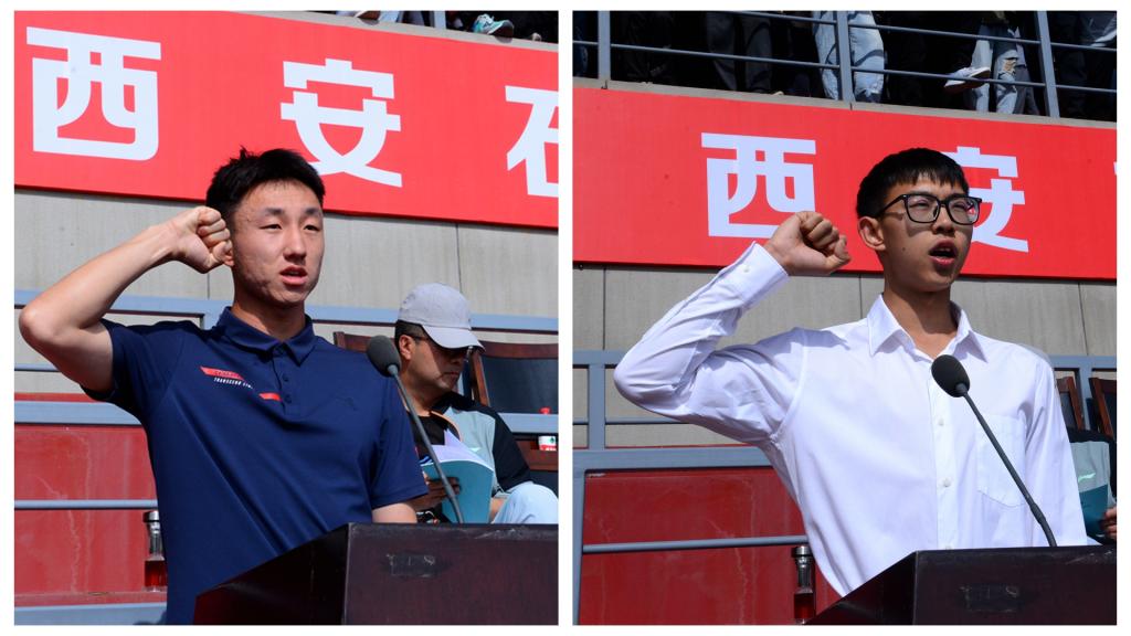 體育學(xué)院教師崔曜川、學(xué)生代表劉思宇分別代表裁判員和運(yùn)動員宣誓。