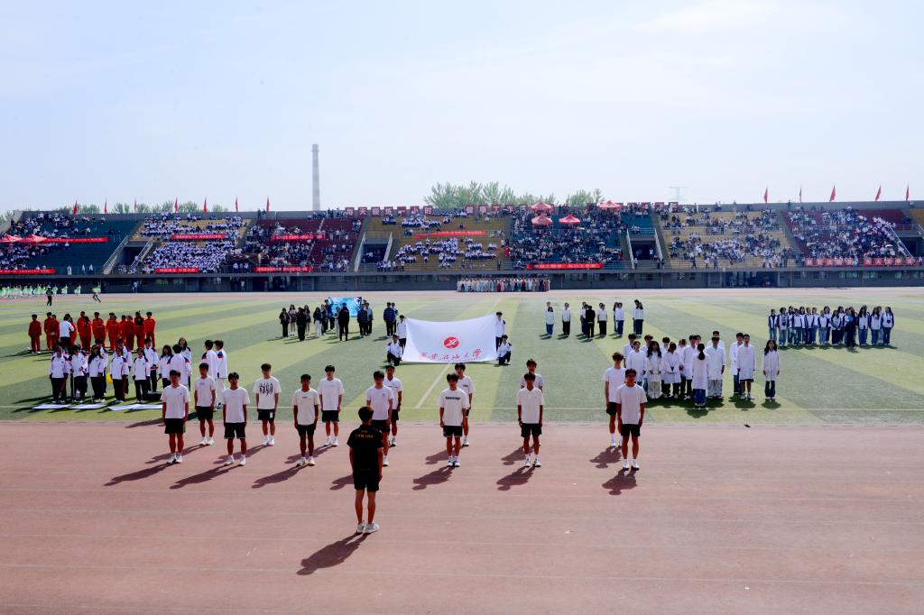 副校長、校體育運(yùn)動委員會主任張君濤致開幕辭。他首先代表學(xué)校向運(yùn)動會的順利召開致以熱烈祝賀,向為本次運(yùn)動會付出辛勤勞動的教職員工和同學(xué)們表示衷心的感謝。他談到,學(xué)校體育是實現(xiàn)“三全育人”和實現(xiàn)“五育融合”的重要環(huán)節(jié)。長期以來,學(xué)校高度重視體育工作,始終堅持“以人為本,健康第一”的體育教育思想,全面落實“健康教育、終身體育”的體育教學(xué)理念,營造了良好的校園體育活動氛圍。在過去的一年里,學(xué)校各項體育競賽活動蓬勃開展,廣大學(xué)子在眾多體育賽事中取得了優(yōu)異成績,為學(xué)校贏得了榮譽(yù)。他希望全體師生能夠堅持體育鍛煉,鍛造健康體魄,為學(xué)校發(fā)展作出更大貢獻(xiàn)。同時,也希望全體運(yùn)動員、教練員、裁判員通力合作,把本屆運(yùn)動會辦成一次“文明、熱烈、精彩、圓滿”的體育盛會。