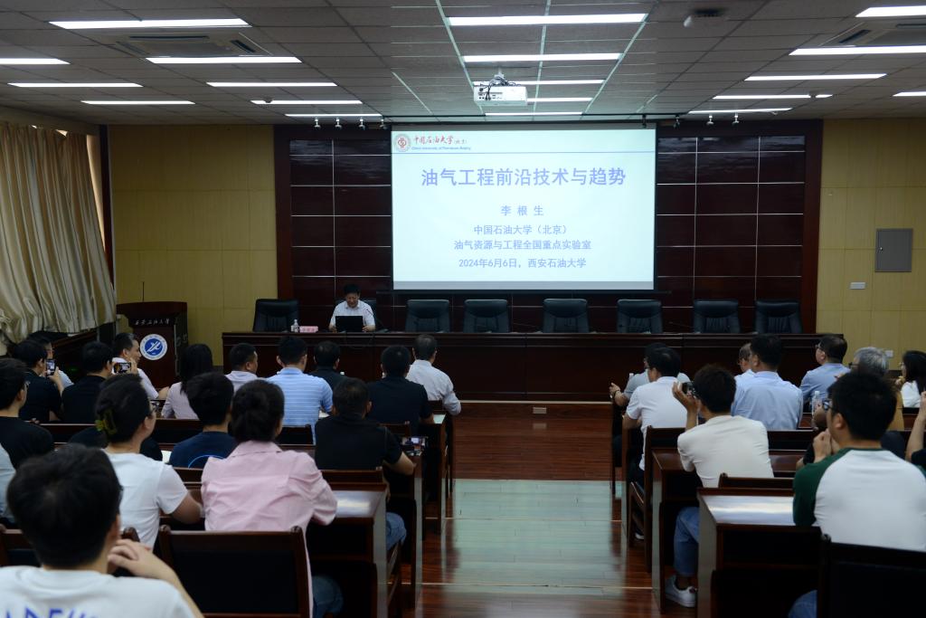 上午10時,李根生院士應(yīng)邀在會議中心第五會議室作題為《油氣工程前沿技術(shù)與趨勢》的學(xué)術(shù)報告。張榮軍主持報告會,我校200余名師生代表到場聆聽。