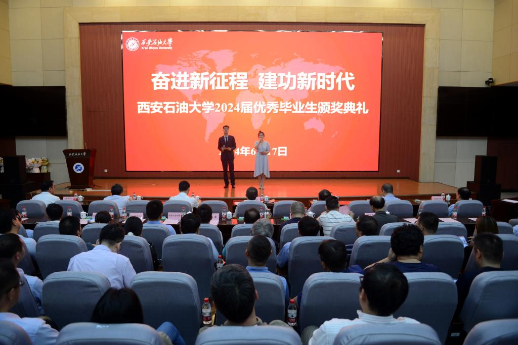 6月17日下午,西安石油大學2024屆優(yōu)秀畢業(yè)生頒獎典禮在鄠邑校區(qū)弘石學術報告廳舉辦。學校黨政領導常江、王進富、張木、楊戰(zhàn)社、張榮軍出席頒獎典禮,黨委辦公室(校長辦公室)、黨委組織部、黨委宣傳部、黨委學生工作部、黨委保衛(wèi)部、團委、教務處、實驗室管理處、研究生院(研究生工作部)、國際教育學院負責人,各院(系)書記、院長(主任)、副書記,全體輔導員及學生代表400余人參加會議。