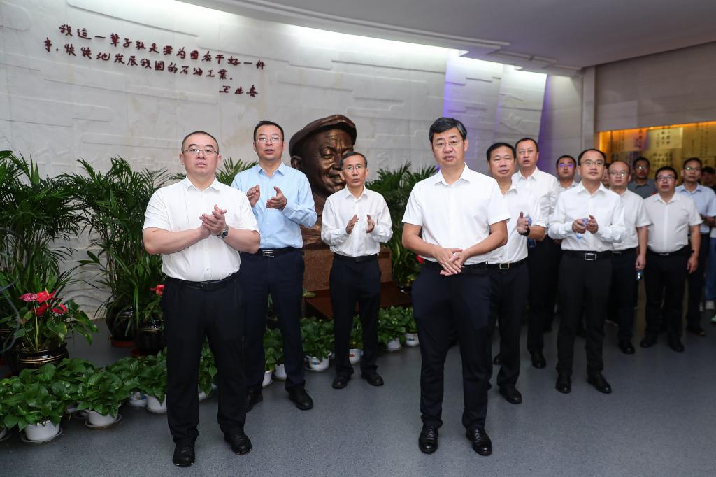 8月6日上午,常江、王進(jìn)富一行參觀了大慶油田鐵人王進(jìn)喜紀(jì)念館,聆聽鐵人故事講解,通過參觀銹跡斑斑的文物、鮮活的老照片、寫滿文字的筆記本等陳列品,物見鐵人本色、感受鐵人精神。大慶鉆探工程有限公司籌備組副組長、鉆探工程公司總經(jīng)理艾鑫全程陪同。