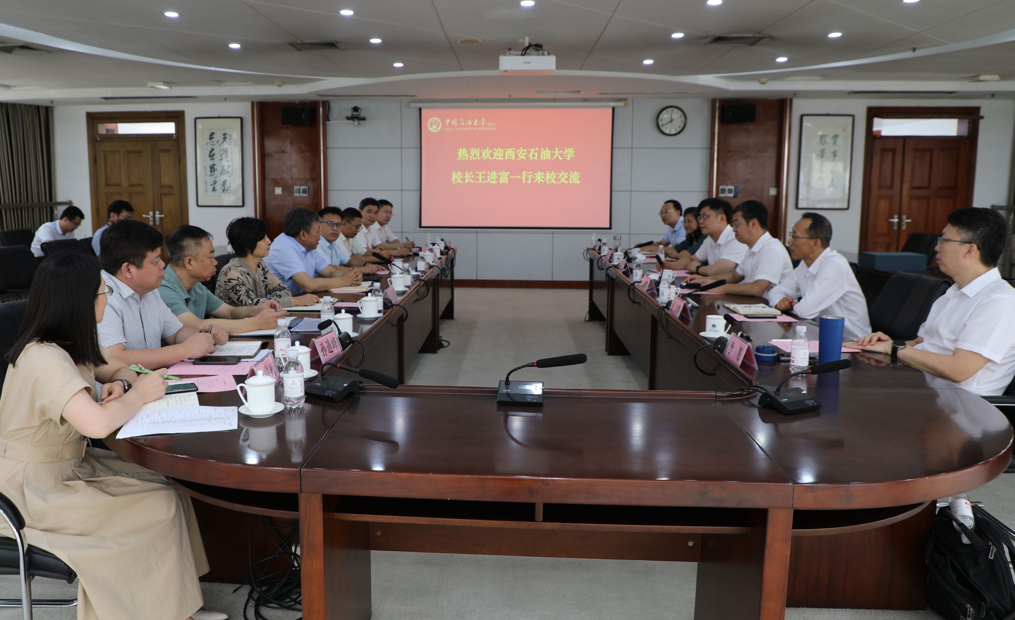 王進(jìn)富對(duì)中國(guó)石油大學(xué)(華東)的熱情接待和長(zhǎng)期以來(lái)對(duì)我校的支持表示感謝,對(duì)該校在支撐國(guó)家能源戰(zhàn)略和人才培養(yǎng)方面取得的卓越貢獻(xiàn)表示高度贊賞。他簡(jiǎn)要介紹了我?;厩闆r、第三次黨代會(huì)以來(lái)學(xué)校取得的成績(jī)以及近期發(fā)展規(guī)劃。王進(jìn)富表示,近期西安石油大學(xué)出臺(tái)一系列新政策、新舉措,致力于優(yōu)化教師隊(duì)伍結(jié)構(gòu)、完善人才培養(yǎng)體系,努力激發(fā)教師隊(duì)伍整體活力,提升人才培養(yǎng)質(zhì)量。他強(qiáng)調(diào)指出,兩校同是新中國(guó)最早建立專門培養(yǎng)石油石化人才的兄弟高校,共同肩負(fù)著為國(guó)家能源安全戰(zhàn)略提供科技支撐、為行業(yè)發(fā)展培育人才的歷史重任。西安石油大學(xué)將充分學(xué)習(xí)借鑒中國(guó)石油大學(xué)(華東)的寶貴經(jīng)驗(yàn)和先進(jìn)做法,希望兩校進(jìn)一步加強(qiáng)交流、深化合作、攜手共進(jìn),共同為推進(jìn)國(guó)家能源領(lǐng)域教育、科技、人才一體化發(fā)展做出更大的貢獻(xiàn)。