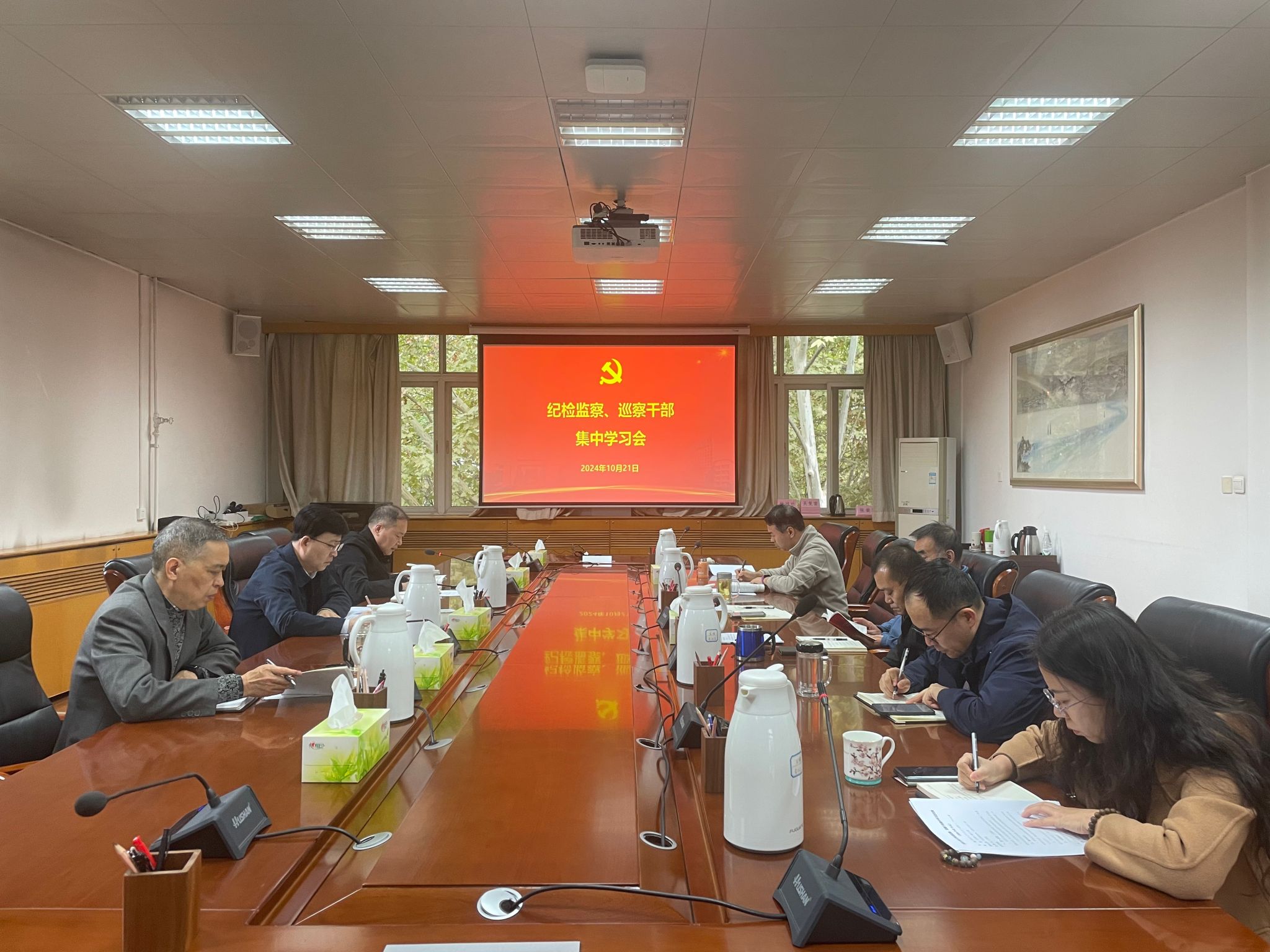 10月21日下午,紀(jì)檢巡察干部2024年第19次集中學(xué)習(xí)會在雁塔校區(qū)行政樓五樓會議室召開,紀(jì)檢監(jiān)察機(jī)構(gòu)、黨委巡察工作辦公室全體干部參加。會議由校黨委副書記、紀(jì)委書記、監(jiān)察專員王輝強(qiáng)主持。