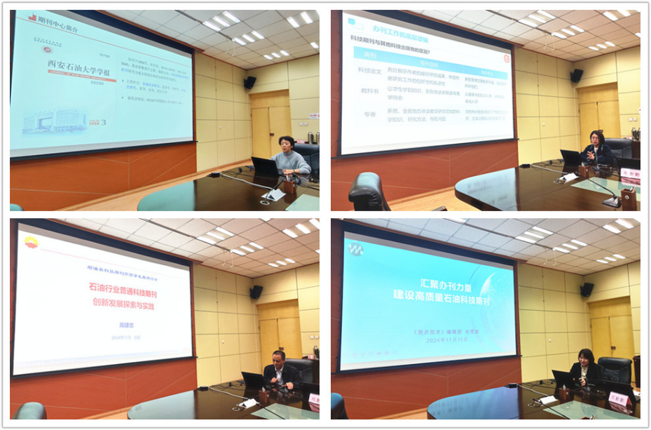 西安石油大學(xué)期刊中心副主任張馨、《油氣儲運》雜志社社長關(guān)中原、中國石油工程材料研究院標(biāo)準(zhǔn)信息與戰(zhàn)略研究所副所長高建忠、《測井技術(shù)》編輯部副主任杜雪威分別以《西安石油大學(xué)學(xué)報(自然科學(xué)版)辦刊實踐與思考》《辦刊工作的底層邏輯與方法論》《匯聚辦刊力量 建設(shè)高質(zhì)量石油科技期刊》為題做了研討會主題報告。他們的報告主題鮮明,觀點突出,內(nèi)容翔實,有助于激發(fā)創(chuàng)新潛力啟迪辦刊思維,提高編輯編審和專題策劃能力,獲得與會人員的一致肯定和高度稱贊。