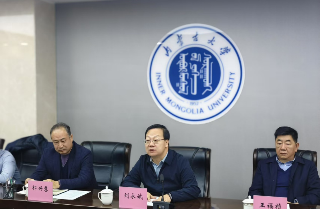 在內(nèi)蒙古大學(xué)走訪調(diào)研期間,內(nèi)蒙古大學(xué)副校長劉永斌對(duì)蘇文甫一行表示熱烈歡迎,并介紹了內(nèi)蒙古大學(xué)辦學(xué)情況、學(xué)科建設(shè)特色、機(jī)構(gòu)設(shè)置及功能定位等情況。