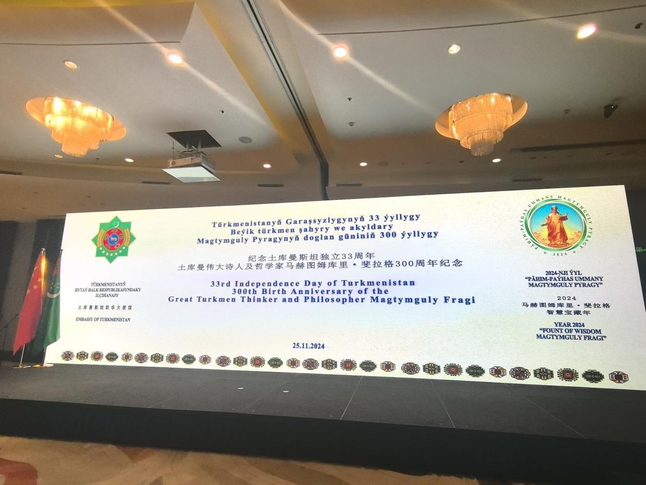 11月25日,土庫(kù)曼斯坦駐華使館在北京舉辦慶祝土庫(kù)曼斯坦獨(dú)立33周年暨馬赫?qǐng)D姆庫(kù)里誕辰300周年招待會(huì)。