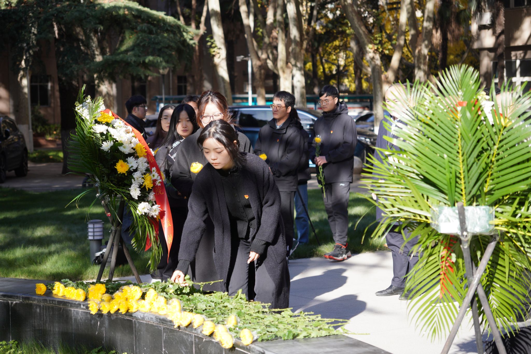 陽光照耀下的唐春雨烈士塑像莊重祥和。全體師生瞻仰唐春雨烈士塑像,默哀一分鐘。常江緩步向前整理了花圈挽聯(lián),隨后全體師生依次向唐春雨烈士敬獻(xiàn)鮮花,鞠躬致敬。