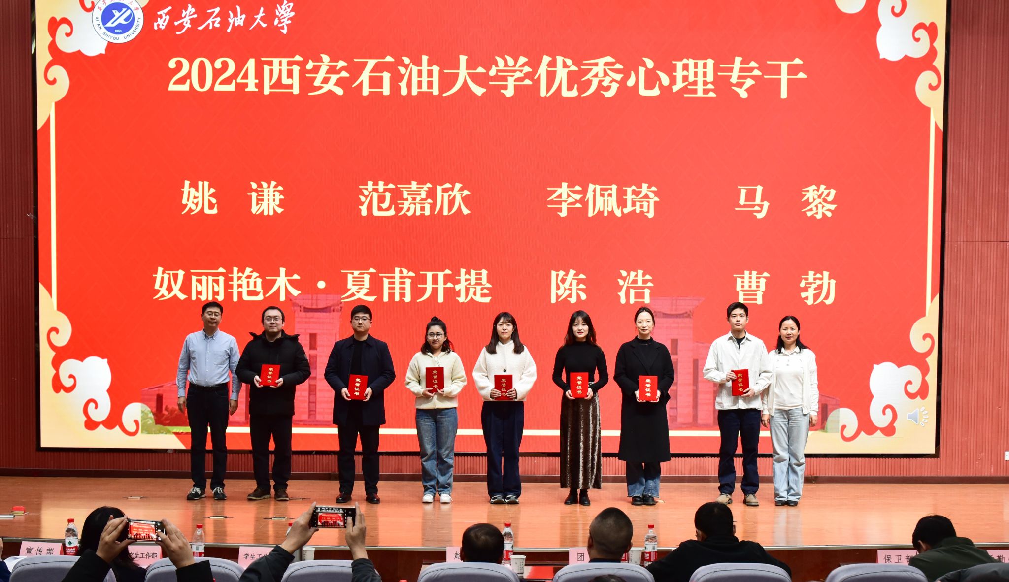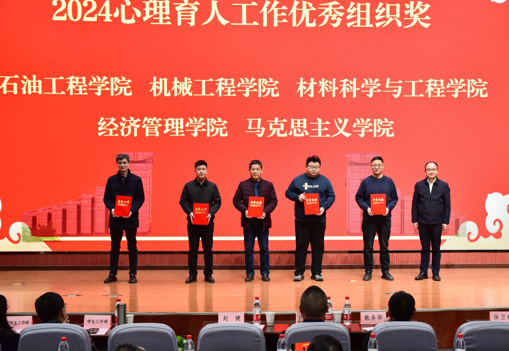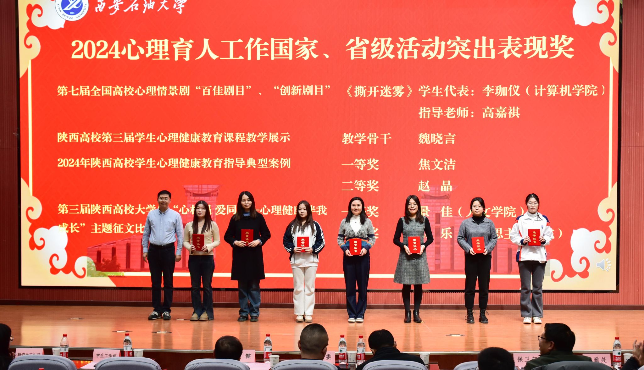 學(xué)生工作部部長(zhǎng)王亮宣讀了我校師生在2024年國(guó)家、省級(jí)心理健康教育工作中的獲獎(jiǎng)情況以及《關(guān)于西安石油大學(xué)2024心理育人工作先進(jìn)單位和個(gè)人的表彰決定》。與會(huì)領(lǐng)導(dǎo)為獲獎(jiǎng)個(gè)人及集體頒獎(jiǎng)。