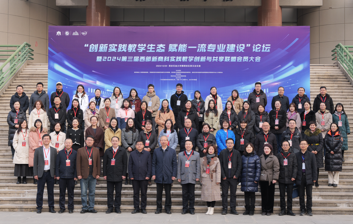 12月20日,“創(chuàng)新實(shí)踐教學(xué)生態(tài) 賦能一流專業(yè)建設(shè)”論壇暨2024第三屆西部新商科實(shí)踐教學(xué)創(chuàng)新與共享聯(lián)盟會(huì)員大會(huì)在西安石油大學(xué)會(huì)議中心召開。本次會(huì)議由陜西高校工商管理教指委、西部新商科實(shí)踐教學(xué)創(chuàng)新與共享聯(lián)盟、教育部大數(shù)據(jù)管理課程虛擬教研室、虛擬仿真實(shí)驗(yàn)教學(xué)創(chuàng)新聯(lián)盟經(jīng)濟(jì)管理類專業(yè)工作委員會(huì)主辦,西安石油大學(xué)經(jīng)濟(jì)管理學(xué)院承辦。