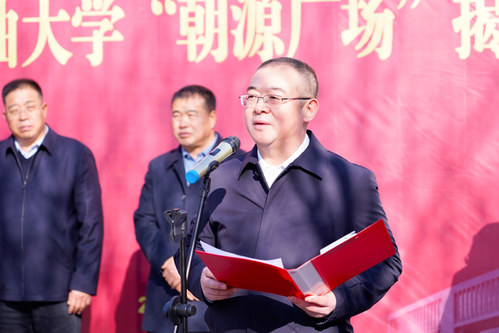 張木詳細介紹了“朝源廣場”冠名的背景、意義。為銘記朝源礦業(yè)捐資助學義舉,學校決定將鄠邑校區(qū)博覽樓中心廣場冠名為“朝源廣場”,刻石留念。