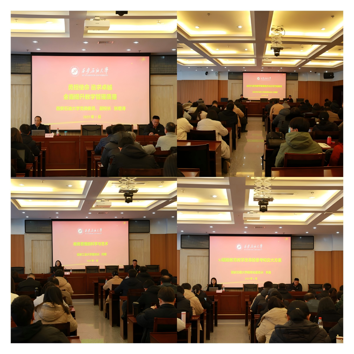 在教學系統(tǒng)干部專題培訓中,副校長張君濤以《勇?lián)姑非笞吭饺嫣嵘虒W管理質量》為題向全體教學系統(tǒng)干部作專題輔導報告。報告包括高等教育教學的新形勢、學校本科教學的新任務和教學管理人員的新要求等三個部分,他從實施鑄魂育人行動、培養(yǎng)體系創(chuàng)新計劃、專業(yè)內涵提升計劃、數(shù)智賦能教學計劃、科教產教融合計劃、教學質量提升計劃、一流師資隊伍建設和教學國際化行動等八個方面系統(tǒng)闡述了學校本科教學的預期目標。他表示教學管理人員要發(fā)揚三種精神、強化五個意識、提升五種能力,成為教學理念創(chuàng)新與變革的引領者、教學秩序與質量穩(wěn)定提升的保障者、教師專業(yè)成長與發(fā)展的促進者、教育資源優(yōu)化與整合的推動者和學校教學質量文化與品牌的塑造者,為如何開展好學校教育教學工作提供了很好的啟示和有力的指導。同時,西北農林科技大學原教務處處長陳遇春作《新時代高校教學管理的方法論與行動自覺》專題講座,闡述了教學管理的內涵與體系,明確了教學管理者的職責定位及工作重點,對提升教學管理的整體效能提供了寶貴經(jīng)驗。西安工業(yè)大學副校長閆莉作《教務管理的科學與藝術》專題講座,闡釋了教務管理科學性與藝術性的意義,講解了教務管理的科學依據(jù)與實踐方案,結合實際案例分享了西安工業(yè)大學教學管理的具體舉措及工作思考,引導教學系統(tǒng)干部創(chuàng)新理念、科學規(guī)劃、精準施策,為優(yōu)化教育教學工作提供了行之有效的管理思路和舉措。西安交通大學教務處副處長李涓作《AI賦能教育教學改革的思考和交大方案》專題講座,分析了國內外高校人工智能賦能教育的背景與趨勢,結合交大實際系統(tǒng)講授了AI+專業(yè)、AI+課程、AI+教學、AI+學習、AI+評價、AI+資源、AI+平臺等七個方面的交大方案與實踐,分享了對AI賦能教育教學改革的思考,展望了智慧教學的未來。