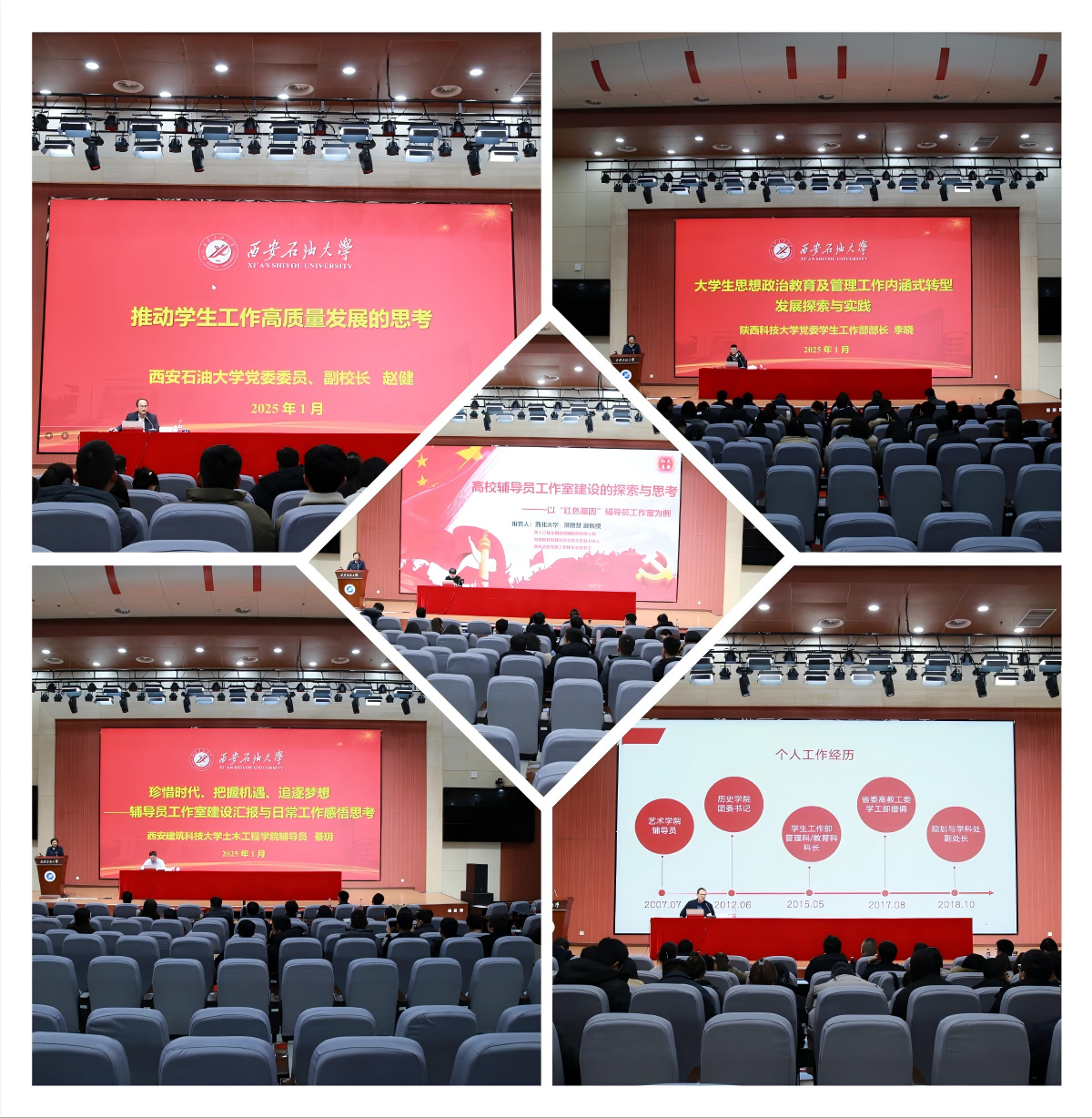 在學工干部專題培訓中,副校長趙健以《立足新時代對標新要求打造新學工——推進我校學生工作高質量發(fā)展的思考》為題向全體學工干部作專題輔導報告。他從打造新學工應秉持的基本理念、應運用的思想方法、應完善的體系架構、應把握的主要關系和應具備的能力作風等五個方面深刻剖析了推動學生工作高質量發(fā)展的實踐路徑,分析了學生工作的現(xiàn)狀與不足,提出了新學工的探索與思考。他強調學校學生工作要以培塑“西石大學工”品牌為牽引,以鐵人精神育人為特色,以人才培養(yǎng)為主線,以安全穩(wěn)定為底線,以學工隊伍能力建設為保障,實施“七持續(xù)”,加快推進學生工作由管理型向服務型、發(fā)展型轉變的總體工作思路,著力解決高校思想政治工作價值引領、內涵建設、治理體系、責任落實、工作方法中存在的問題,實現(xiàn)人人、時時、處處育人的大思政格局。報告對提升學生工作育人質量具有很強的指導意義,為學工干部履職盡責和事業(yè)發(fā)展提供了新策略。同時,陜西科技大學黨委學生工作部部長李曉作《大學生思想政治教育及管理工作內涵式轉型發(fā)展探索與實踐》專題講座,分析了大學生思想政治教育及管理工作轉型的必要性,結合工作案例介紹了思政教育及管理工作內涵式發(fā)展的探索,有助于學工干部提升學生工作水平和質量。西北大學生命科學學院組織員、輔導員、副教授常雅慧作《高校輔導員工作室建設的探索與思考——以“紅色基因”輔導員工作室為例》專題講座,講授了輔導員工作室建設的出發(fā)點、建設路徑和落腳點,分享了工作室在學生黨建工作中的實踐經(jīng)驗和深刻思考,啟發(fā)了輔導員對學生工作的創(chuàng)新思路。西安建筑科技大學土木工程學院輔導員綦玥作《珍惜時代、把握機遇、追逐夢想——輔導員工作室建設匯報與日常工作感悟思考》專題講座,以“溪澗清源”輔導員工作室的實踐與探索引發(fā)輔導員專業(yè)化職業(yè)化專家化的工作反思,為高質量開展學生工作提供了寶貴的實踐參考。西北大學發(fā)展規(guī)劃與學科建設處副處長薛原作《對于學生工作的一些個人體會與思考》專題講座,從輔導員的自我修養(yǎng)闡釋了輔導員自我認知與工作方法,結合以生為本探索了輔導員工作本位選擇與體系構建,為提升輔導員工作質效提供了有力指導。