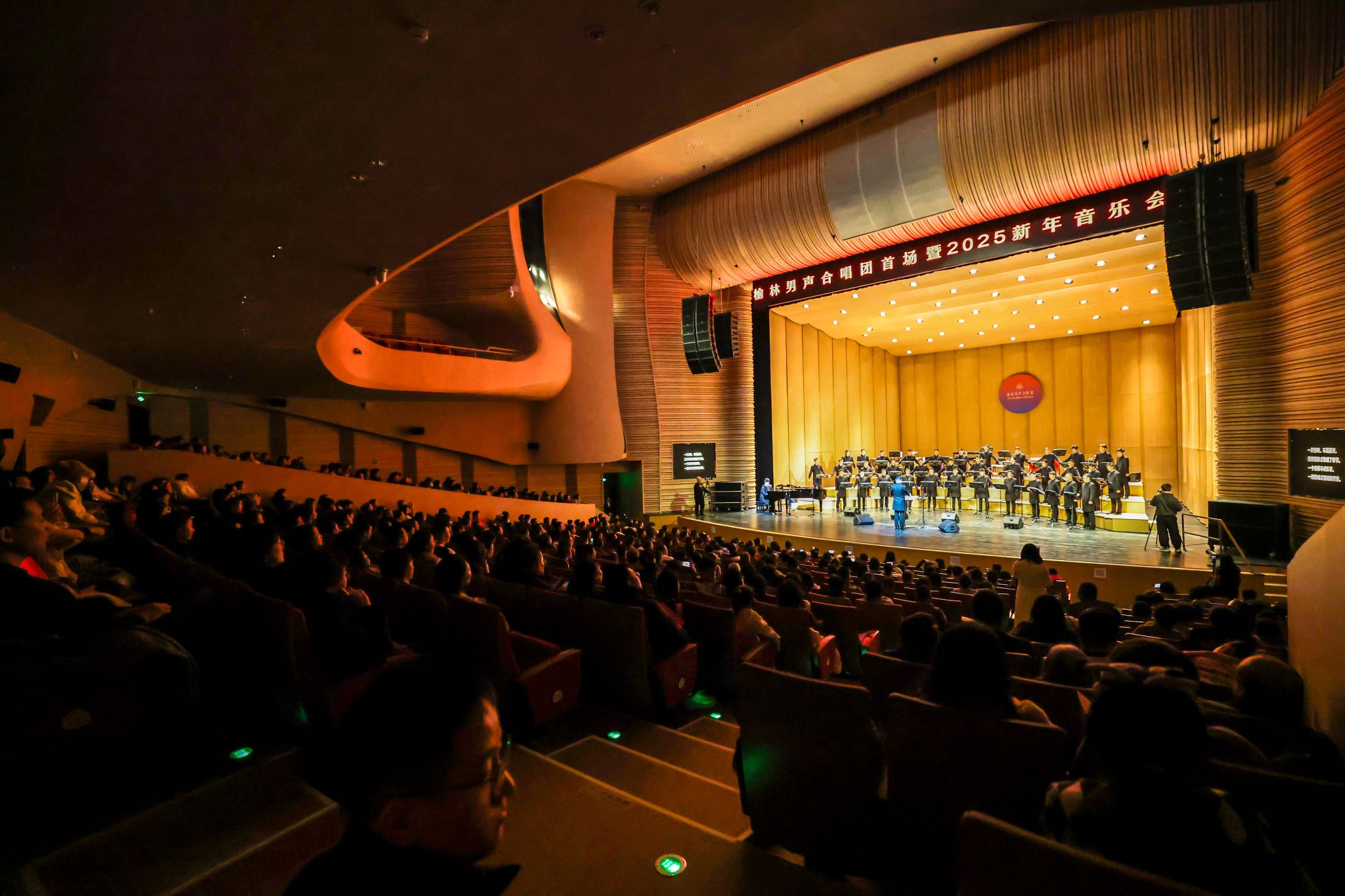 整場音樂會共分“古典之風”“流行樂章”“各地民歌”三個篇章,巧妙融合了榆林這座城市獨有的歷史文化底蘊與現(xiàn)代蓬勃朝氣。其中,拉丁語演唱的選自清唱劇《布蘭詩歌》中的唱段“在酒館里”,作為世界經(jīng)典男聲合唱作品,一展合唱團的專業(yè)水準;韓語演唱的歌曲《你不要擔心》,則是在榆林地區(qū)的首次公演,為觀眾帶來別樣的聽覺體驗。此外,在排練期間不脛而走的清澗方言歌曲《可想你哩》,憑借網(wǎng)絡(luò)高達5000萬的播放量,成為當晚的壓軸曲目。演出時,臺上臺下齊聲合唱,全場互動熱烈,將氛圍推向高潮。一位觀眾在結(jié)束時不禁感慨:“原本對本土音樂會期待不高,沒想到卻帶來巨大的驚喜!榆林如今也與世界接軌了!”更有觀眾不遠千里,從海南、山西、內(nèi)蒙、西安等地專程趕來榆林觀看,對合唱團成員的高水平表現(xiàn)給予了高度贊譽。