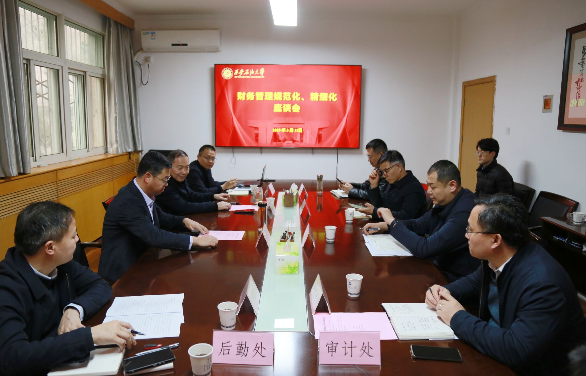 2025年3月11日,學(xué)校財(cái)務(wù)管理規(guī)范化、精細(xì)化座談會議在雁塔校區(qū)行政樓二樓會議室召開。會議由校長王進(jìn)富主持,黨委辦公室(校長辦公室)、發(fā)展規(guī)劃處、人事處、教務(wù)處、科研處、研究生院、財(cái)務(wù)處、審計(jì)處、后勤處主要負(fù)責(zé)人參加會議。