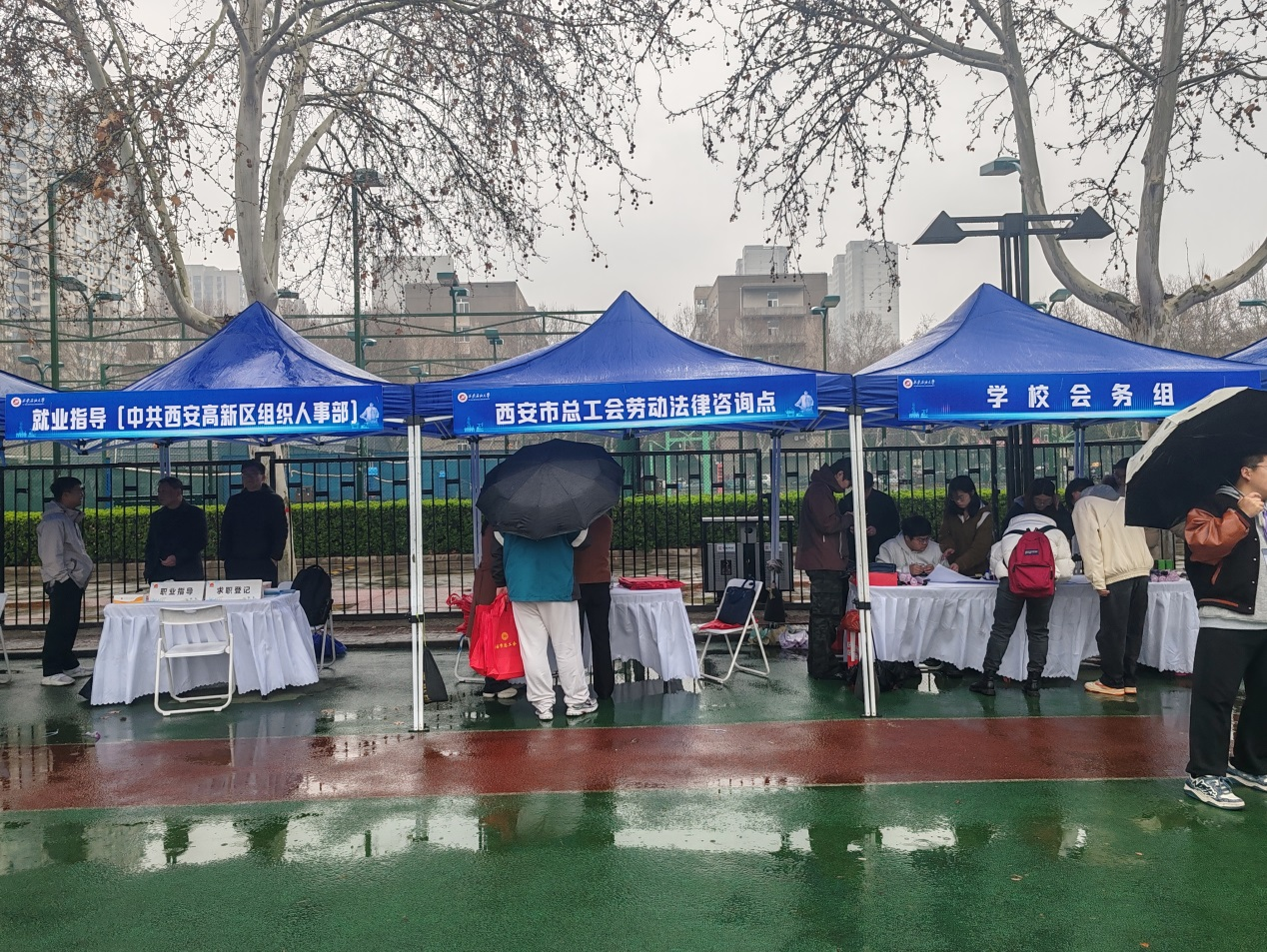 會(huì)場設(shè)置了“入場簽到”“就業(yè)與留學(xué)服務(wù)中心咨詢點(diǎn)”“西安市總工會(huì)法律援助”“雁塔區(qū)人才服務(wù)驛站”“簡歷門診”“征兵入伍咨詢點(diǎn)”“后勤服務(wù)保障點(diǎn)”“3·15消費(fèi)者權(quán)益宣傳”“失物招領(lǐng)處”等一站式功能服務(wù)區(qū),著力提升人崗匹配效率,通過AI賦能,充分保障畢業(yè)生多渠道落實(shí)畢業(yè)去向,提升就業(yè)服務(wù)質(zhì)量和效率。