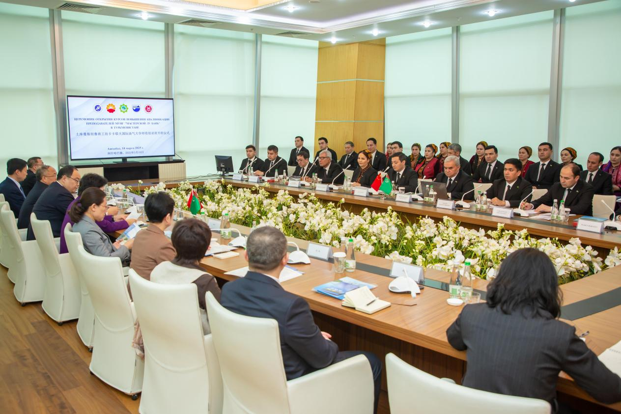 3月10日上午,“土庫曼斯坦魯班工坊卡卡耶夫國際油氣大學師資培訓班開班儀式”在卡卡耶夫國際油氣大學舉行。土庫曼斯坦教育部副部長阿扎特·阿塔耶夫主持儀式并致辭,土庫曼斯坦教育部國際合作司司長古力娜巴特·古爾洛娃、卡卡耶夫國際油氣大學校長拜拉姆穆拉特·阿塔馬諾夫、中國駐土庫曼斯坦大使館公使銜參贊仲華、中共陜西省委教育工委書記、陜西省教育廳廳長王樹聲,西安石油大學黨委書記常江,中石油阿姆河天然氣公司總經理張培軍等出席儀式。