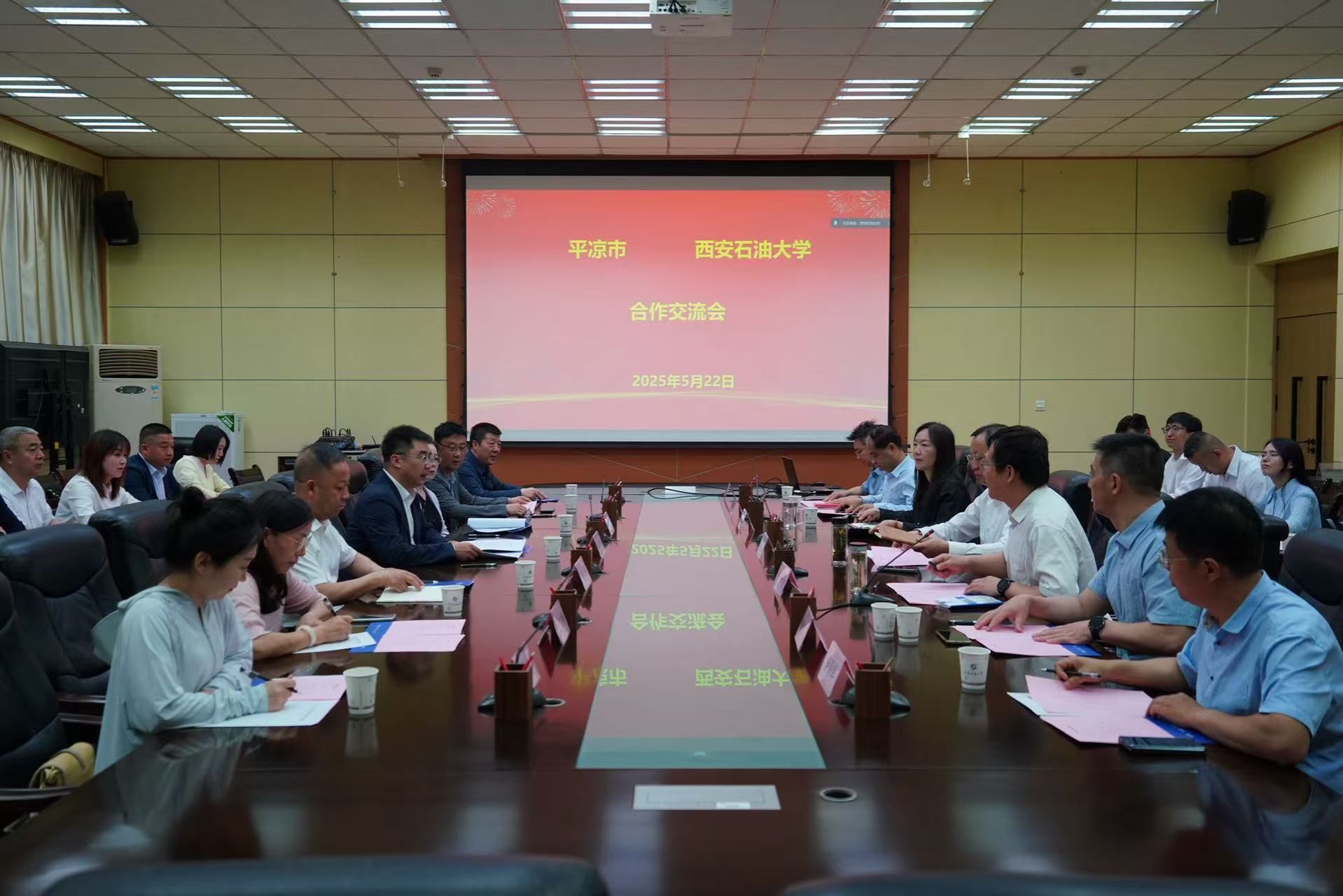 5月22日上午,平?jīng)鍪姓笔虚L古小冬一行來??疾旖涣?,平?jīng)鍪锌萍季贮h組書記劉婧、華亭市政府副市長田福等陪同來訪。會議在雁塔校區(qū)會議中心第一會議室舉行,副校長張榮軍出席會議。