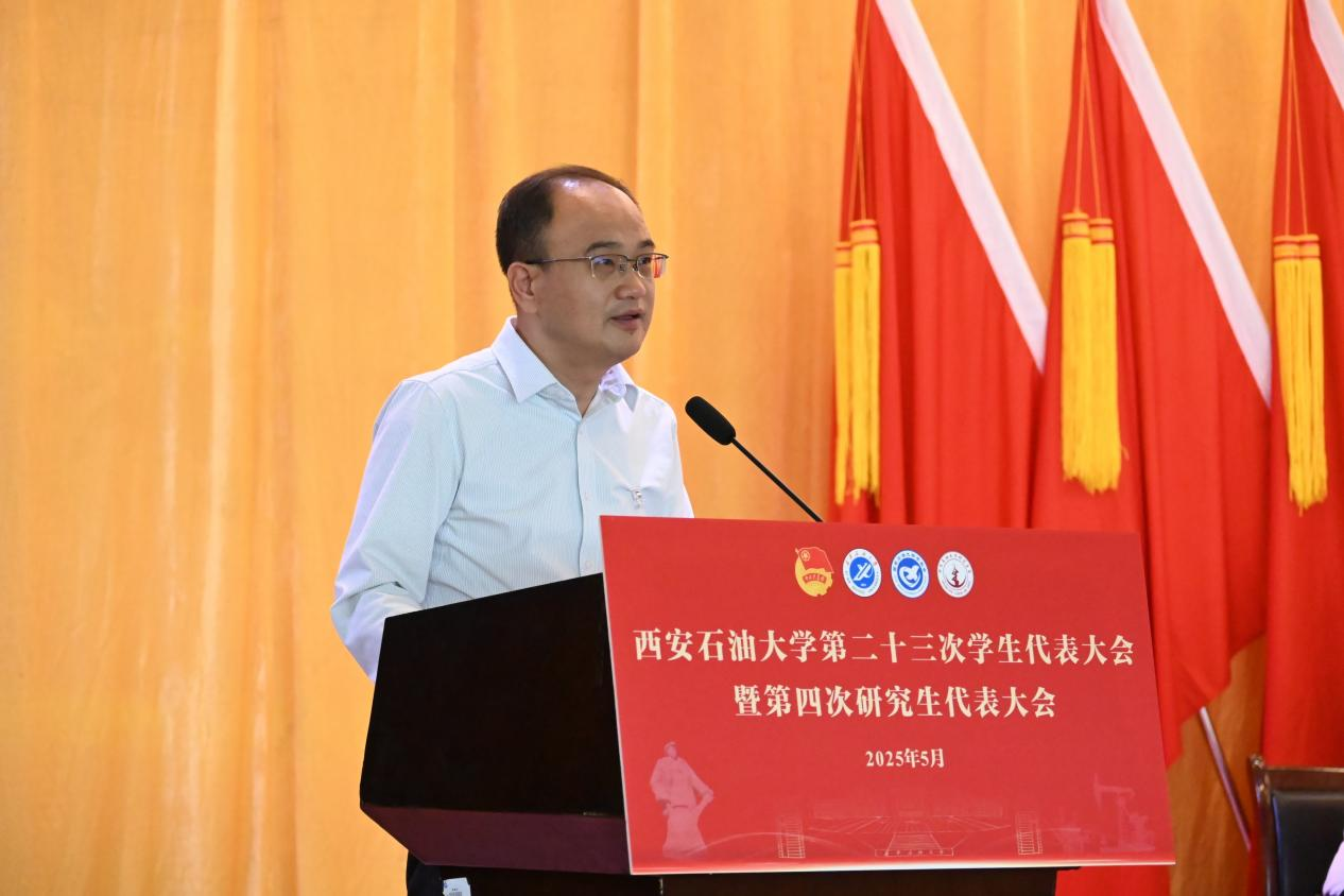 趙健代表學(xué)校黨委向大會(huì)的勝利召開表示熱烈的祝賀,向全體與會(huì)代表致以親切的問候。他指出,本次大會(huì)是在全校上下深入學(xué)習(xí)貫徹黨的二十大和二十屆二中、三中全會(huì)精神,認(rèn)真落實(shí)學(xué)校第三次黨代會(huì)決策部署,奮力譜寫學(xué)校高質(zhì)量發(fā)展新篇章的關(guān)鍵時(shí)期召開的一次青春盛會(huì),是全校廣大青年學(xué)生政治生活的一件大事。他充分肯定了全校各級(jí)學(xué)生會(huì)組織過去一年以來的工作,對(duì)大家的努力工作和辛苦付出表示感謝。他就做好下一步工作,向我校各級(jí)學(xué)生會(huì)組織提出三點(diǎn)要求:一是高舉偉大旗幟,強(qiáng)化思想引領(lǐng),堅(jiān)定聽黨話、跟黨走的政治信念。要始終堅(jiān)持以習(xí)近平新時(shí)代中國特色社會(huì)主義思想為指導(dǎo),弘揚(yáng)偉大愛國主義精神,樹立正確的價(jià)值觀、奮斗觀和成才觀,引領(lǐng)廣大青年學(xué)子深刻領(lǐng)悟“兩個(gè)確立”的決定性意義,增強(qiáng)“四個(gè)意識(shí)”、堅(jiān)定“四個(gè)自信”,自覺做到“兩個(gè)維護(hù)”;二是聚焦同學(xué)關(guān)切,搭建成長(zhǎng)平臺(tái),打造有溫度、有活力的學(xué)生組織。要牢記“全心全意為同學(xué)服務(wù)”的宗旨,主動(dòng)適應(yīng)學(xué)生會(huì)改革新形勢(shì),充分發(fā)揮貼近同學(xué)、覆蓋廣泛的組織優(yōu)勢(shì),傾聽同學(xué)心聲,解決實(shí)際問題,做到常態(tài)化了解反映同學(xué)思想動(dòng)態(tài)、普遍需求、急難愁盼;三是持續(xù)深化改革,加強(qiáng)自身建設(shè),彰顯作風(fēng)硬、善作為的青春擔(dān)當(dāng)。要持續(xù)鞏固改革成果,自覺對(duì)標(biāo)全面從嚴(yán)治黨、全面從嚴(yán)治團(tuán)要求,持續(xù)深入推進(jìn)從嚴(yán)治會(huì),著力打造出一支“鐵人式”學(xué)生會(huì)組織干部隊(duì)伍,加強(qiáng)內(nèi)部建設(shè),完善制度規(guī)范,提升工作效率,真正成為同學(xué)們信賴的“自家人”。他通過參會(huì)的學(xué)生代表,向全校青年學(xué)子提出三點(diǎn)希望:一是磨煉“勇攀高峰”的銳氣,以堅(jiān)定者的姿態(tài)勇做新時(shí)代的弄潮兒。希望同學(xué)們擁有追求卓越的志氣、奮進(jìn)一流的心氣、蓬勃向上的朝氣,要立志民族復(fù)興,正確處理理想和現(xiàn)實(shí)、主義和問題、利己和利他、小我和大我、民族和世界的關(guān)系,將個(gè)人努力奮斗的“小目標(biāo)”融入民族復(fù)興的“大藍(lán)圖”,奮筆書寫青春的光榮答卷;二是增強(qiáng)“自找苦吃”的勇氣,以奮進(jìn)者的姿態(tài)勇做新時(shí)代的引領(lǐng)者。同學(xué)們要以好學(xué)力行創(chuàng)造更多強(qiáng)起來的機(jī)會(huì),努力擔(dān)當(dāng)作為,以自強(qiáng)不息拓展更大的空間,融入發(fā)展大局,爭(zhēng)做崇學(xué)向上、知行合一的青年實(shí)干家,用自身的成長(zhǎng)歷程、精神追求、模范行動(dòng)彰顯西石大學(xué)子的優(yōu)秀品質(zhì);三是涵養(yǎng)“挺膺擔(dān)當(dāng)”的底氣,以搏擊者的姿態(tài)勇做新時(shí)代的追夢(mèng)人。大家要自覺用黨的創(chuàng)新理論武裝頭腦,厚植對(duì)黨的信賴、對(duì)中國特色社會(huì)主義的信心,用腳步丈量祖國大地,用眼睛發(fā)現(xiàn)中國精神,用耳朵傾聽人民呼聲,用內(nèi)心感應(yīng)時(shí)代脈搏,在融入中心中體現(xiàn)責(zé)任擔(dān)當(dāng),努力踐行“請(qǐng)黨放心,強(qiáng)國有我”的錚錚誓言。