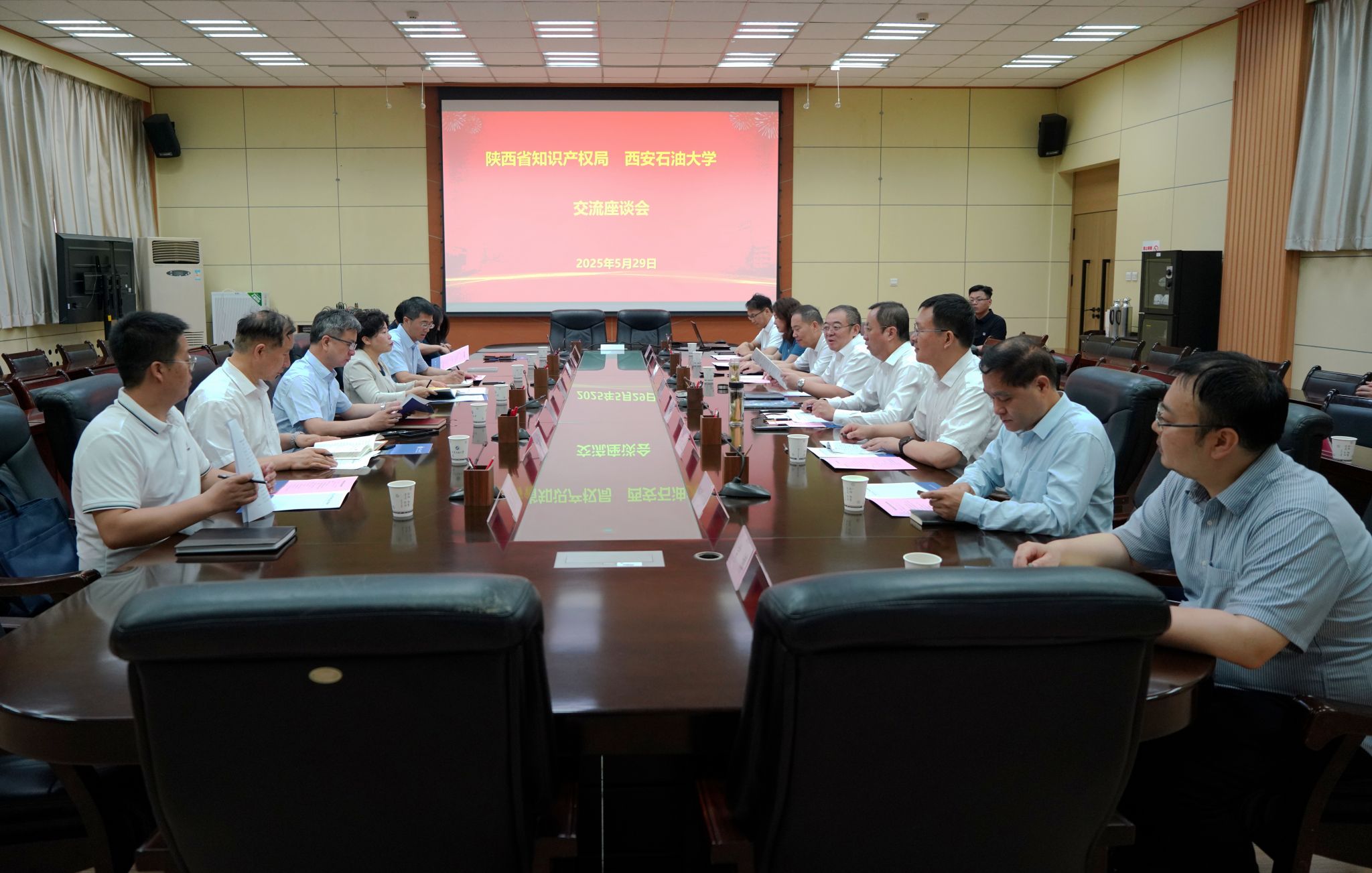 5月29日上午,陜西省知識產(chǎn)權(quán)局黨組書記、局長沈黎萍一行來校座談交流。會議在雁塔校區(qū)會議中心第一會議室舉行,黨委書記常江出席會議,副校長張榮軍主持會議。雙方圍繞知識產(chǎn)權(quán)創(chuàng)造、保護(hù)與轉(zhuǎn)化展開深度對話,并就深化戰(zhàn)略合作達(dá)成高度共識。
