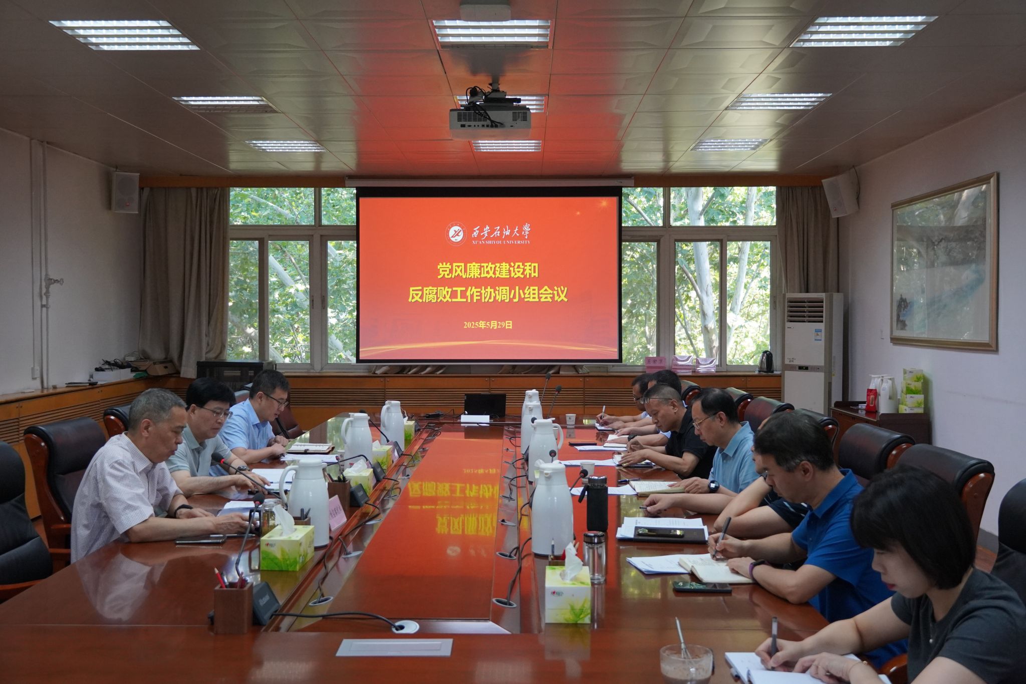 5月29日上午,學(xué)校黨風(fēng)廉政建設(shè)和反腐敗工作協(xié)調(diào)小組召開2025年第一次會議。校黨委副書記、紀委書記、監(jiān)察專員、協(xié)調(diào)小組組長王輝強出席會議并講話。黨委辦公室(校長辦公室)、紀檢監(jiān)察機構(gòu)、黨委巡察工作辦公室、組織部、人事處、財務(wù)處、審計處等部門負責(zé)人和紀檢監(jiān)察機構(gòu)有關(guān)人員參加會議。