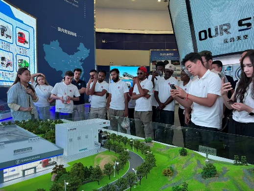 當(dāng)日下午,師生一行赴陜西汽車控股集團(tuán)有限公司(陜汽控股)開展企業(yè)參訪。在企業(yè)展廳,留學(xué)生們詳細(xì)了解了陜汽的發(fā)展歷程、企業(yè)文化及“德贏天下”的品牌理念。通過講解員介紹,大家認(rèn)識(shí)到陜汽不僅是中國重型商用車行業(yè)的領(lǐng)軍企業(yè),更在國防建設(shè)和社會(huì)公益等領(lǐng)域肩負(fù)重要責(zé)任。