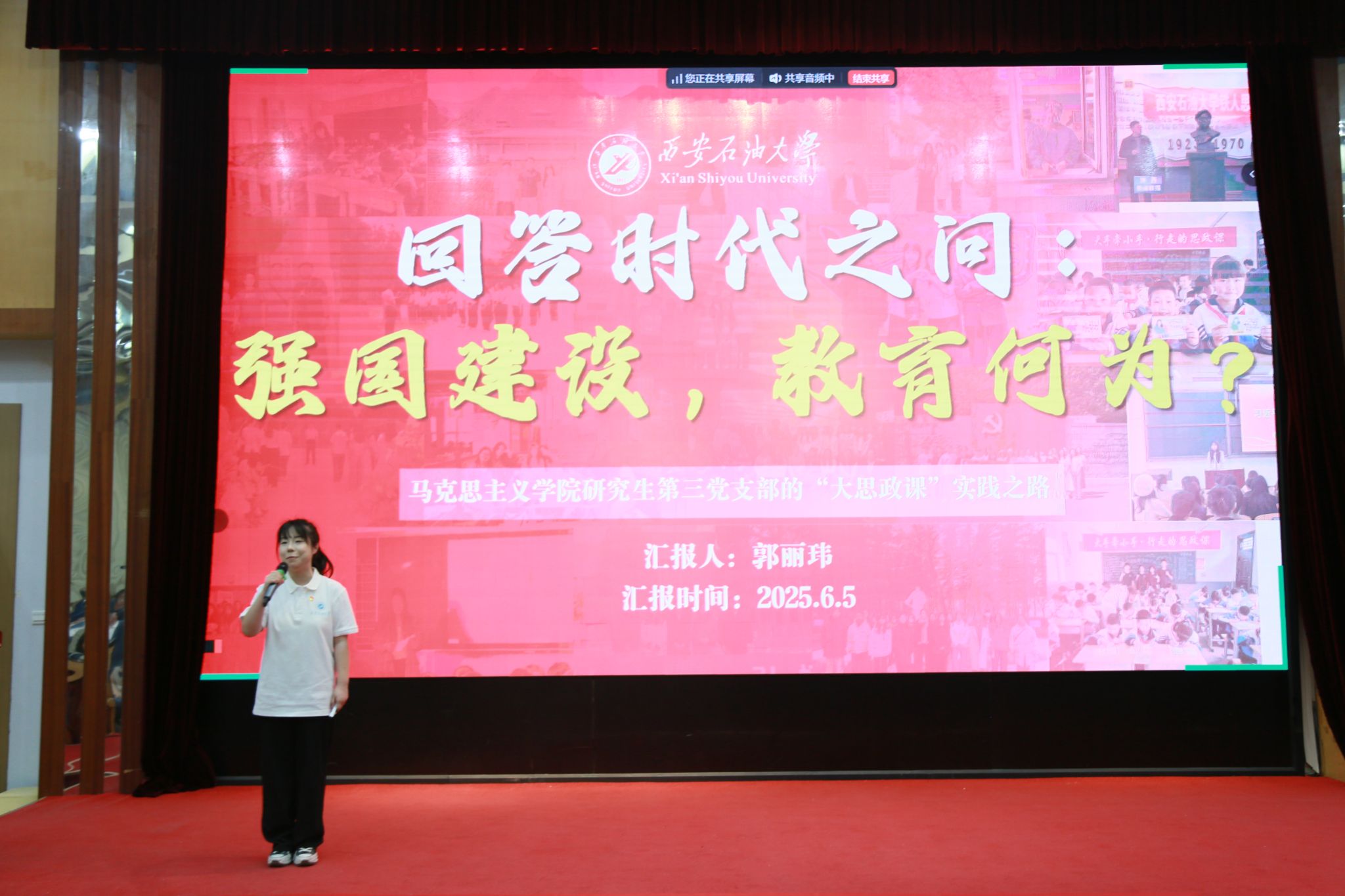 在十佳研究生黨員風(fēng)采展示中,石油工程學(xué)院博士研究生陳浩宇講述了以“融山匯海”之志踐行能源報(bào)國(guó)初心,將九年志愿服務(wù)與六年黨務(wù)工作融入科研探索,發(fā)表8篇SCI論文和多項(xiàng)科研項(xiàng)目,以1150小時(shí)志愿服務(wù)踐行初心,以山海之志鑄就能源報(bào)國(guó)的新篇。經(jīng)濟(jì)管理學(xué)院碩士研究生姬祥飛講述了在西石大七年求學(xué)中,勤于實(shí)踐,漫漫求索,獲學(xué)生骨干、學(xué)術(shù)科研、學(xué)科競(jìng)賽等多項(xiàng)成果,曾獲三次國(guó)家獎(jiǎng)學(xué)金,榮獲“陜西好青年”,彰顯新時(shí)代青年擔(dān)當(dāng)?shù)墓适隆C(jī)械工程學(xué)院碩士研究生李紀(jì)新,以“紀(jì)實(shí)青春支教路,心繪未來(lái)新篇章”為主題分享了他的支教經(jīng)歷和感悟,展現(xiàn)了以青春之小我融入祖國(guó)之大我,在未來(lái)學(xué)術(shù)挑戰(zhàn)中奮勇向前的信心和決心。電子工程學(xué)院碩士研究生熊澤康以“小電路大擔(dān)當(dāng):一名工科黨員的能源報(bào)國(guó)路”為題,講述了以紅色信仰鑄就科研報(bào)國(guó)志,在團(tuán)隊(duì)科研項(xiàng)目中實(shí)現(xiàn)國(guó)產(chǎn)化突破,抒發(fā)了石油學(xué)子以電路為刃破解能源困局,以青春擔(dān)當(dāng)鑄牢國(guó)家能源安全防線(xiàn)的青春志向。