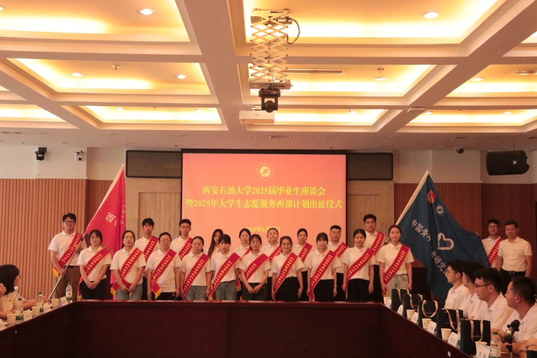 6月17日下午,我校2025屆畢業(yè)生座談會暨2025年大學(xué)生志愿服務(wù)西部計劃出征儀式在鄠邑校區(qū)圖書館第一會議室舉行。校長王進(jìn)富,黨委辦公室(校長辦公室)、黨委宣傳部、黨委學(xué)生工作部、黨委保衛(wèi)部、校團(tuán)委、教務(wù)處、實驗室管理處、研究生工作部、后勤處、高教研究與評估督導(dǎo)中心、圖書館、校醫(yī)院、國際教育學(xué)院主要負(fù)責(zé)人,各院(系)主管學(xué)生工作負(fù)責(zé)人和44名來自各院(系)的2025屆畢業(yè)生代表參加會議,會議由副校長種宇宏主持。