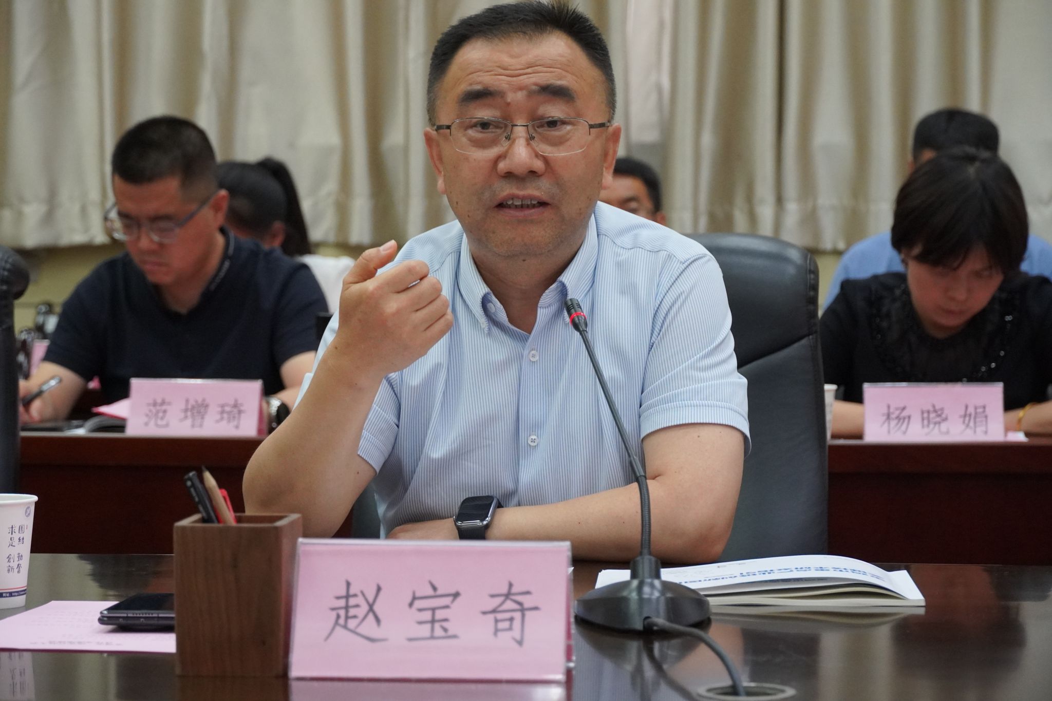 6月20日,寶雞市政府副秘書長趙寶奇率隊來校就產(chǎn)教融合、科教融匯相關(guān)事宜座談交流。我校黨委副書記張木出席座談會。