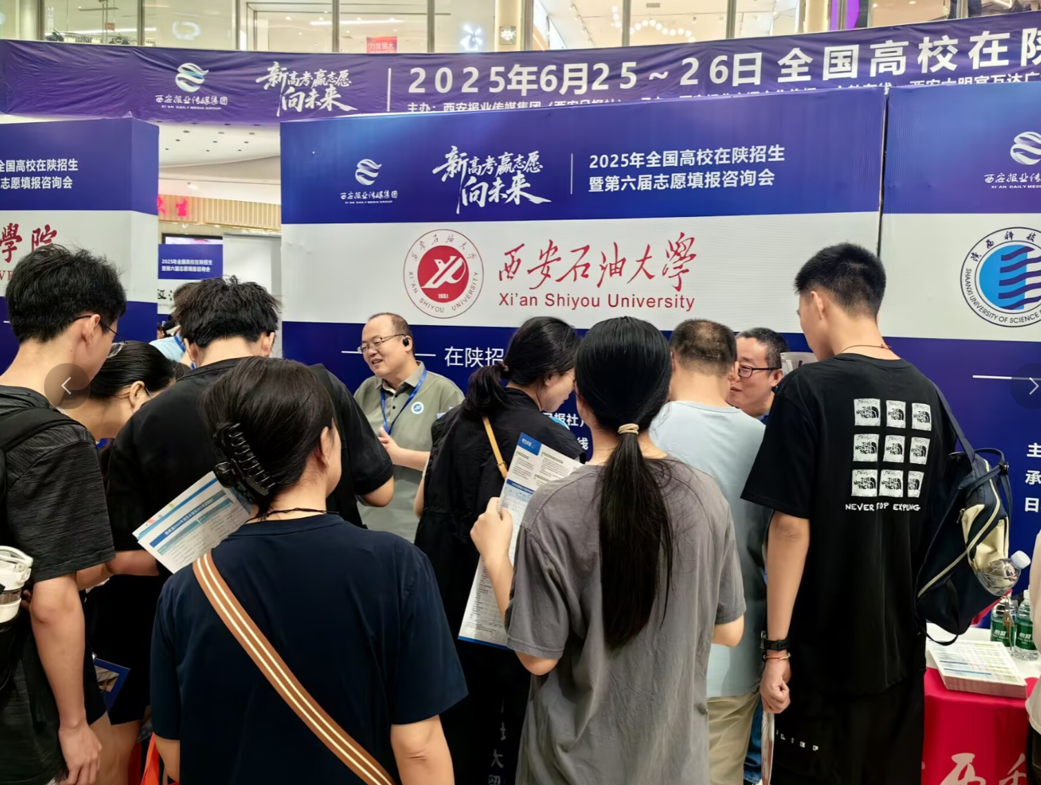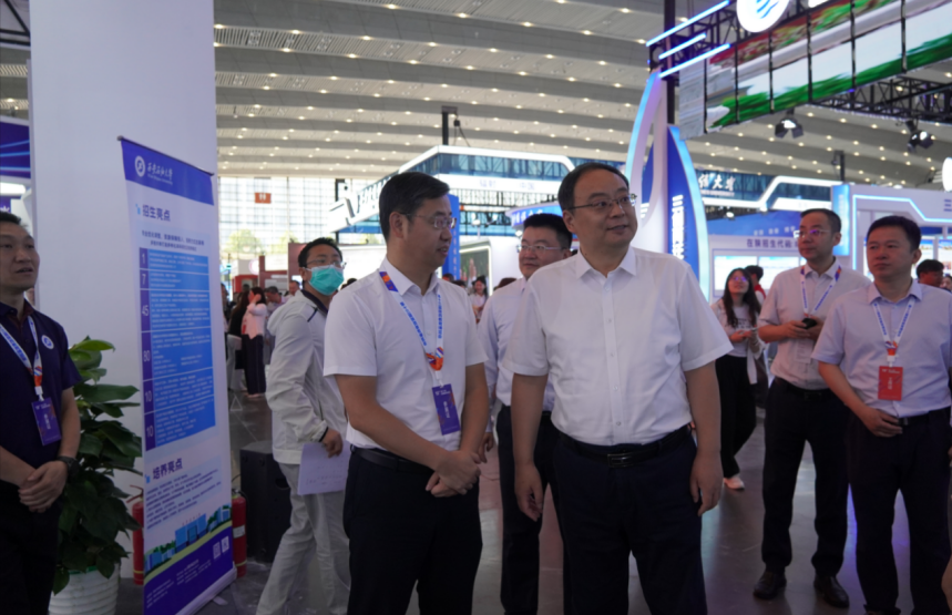6月26日-28日,學(xué)校還組織參加了第十三屆陜西教育博覽會暨招生咨詢會。展覽期間,省委教育工委書記、省教育廳廳長王樹聲、副廳長吳振磊等領(lǐng)導(dǎo)在校長王進(jìn)富、副校長張君濤的陪同下蒞臨我校展位視察指導(dǎo)工作。宣傳部、教務(wù)處、科研處、研究生院、馬克思主義學(xué)院、各院(系)專家教授及招生志愿者參加了本次博覽會暨招生咨詢會。本屆博覽會以“AI賦能教育發(fā)展,推動教育強(qiáng)省建設(shè)”為主題。學(xué)校在會展中心1號館設(shè)立展廳,以展板、視頻、實物等方式全面呈現(xiàn)學(xué)校發(fā)展歷程、辦學(xué)特色、平臺實力、培養(yǎng)模式等,吸引了眾多考生、家長前來觀看咨詢。各院(系)骨干教師、志愿者組成的招生咨詢團(tuán)隊現(xiàn)場為考生和家長提供權(quán)威解讀,對考生志愿填報進(jìn)行詳細(xì)指導(dǎo)。