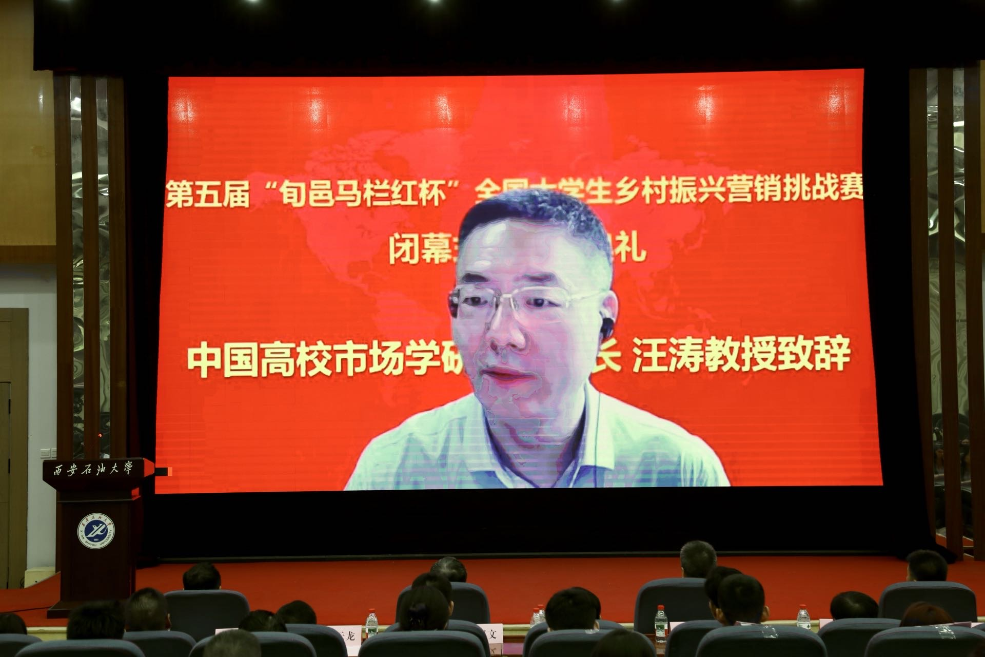 中國高等院校市場學研究會會長汪濤教授在致辭中指出,本項賽事已成為連接高校智力與鄉(xiāng)村需求的重要橋梁,為校地企媒協(xié)同發(fā)展提供了可復制模式。他強調(diào)鄉(xiāng)村振興是理論實踐的“試金石”、青春價值的“放大器”、社會責任的“共同體”,建議持續(xù)深化產(chǎn)學研融合,建立常態(tài)成果轉(zhuǎn)化機制;聚焦數(shù)字“新質(zhì)生產(chǎn)力”,運用直播電商等技術(shù)解決農(nóng)產(chǎn)品痛點;將鄉(xiāng)村振興融入高校人才培養(yǎng)體系,培育兼具專業(yè)與家國情懷的青年力量。