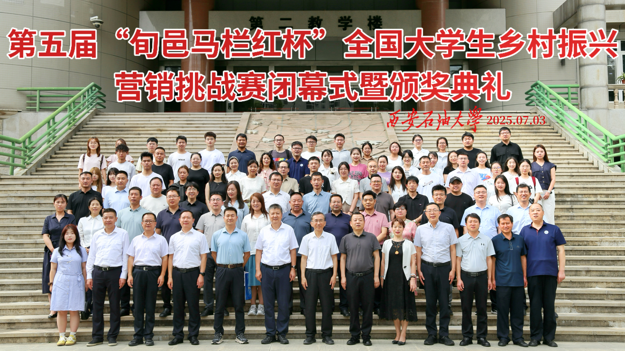 7月3日,第五屆“旬邑馬欄紅杯”全國大學生鄉(xiāng)村振興營銷挑戰(zhàn)賽閉幕式暨頒獎典禮在西安石油大學雁塔校區(qū)會議中心順利舉行。本屆賽事由西安石油大學、旬邑縣人民政府、陜西廣電融媒體集團三農(nóng)中心等單位共同主辦,中國高等院校市場學研究會為指導單位。咸陽市副市長葉新階、副秘書長何有明、農(nóng)業(yè)農(nóng)村局副局長袁野,陜西省果業(yè)中心綜合處處長張東峰,旬邑縣委副書記、縣長陳永勝、副縣長譚震,陜西廣電融媒體集團質(zhì)農(nóng)愛購平臺總經(jīng)理趙小飛,中國銀行咸陽分行行政事業(yè)部主任朱燕萍、陜西日報群眾新聞網(wǎng)副總經(jīng)理劉強,西安石油大學黨委副書記張木等出席閉幕式。參賽團隊、企業(yè)負責人百余人到場參會。