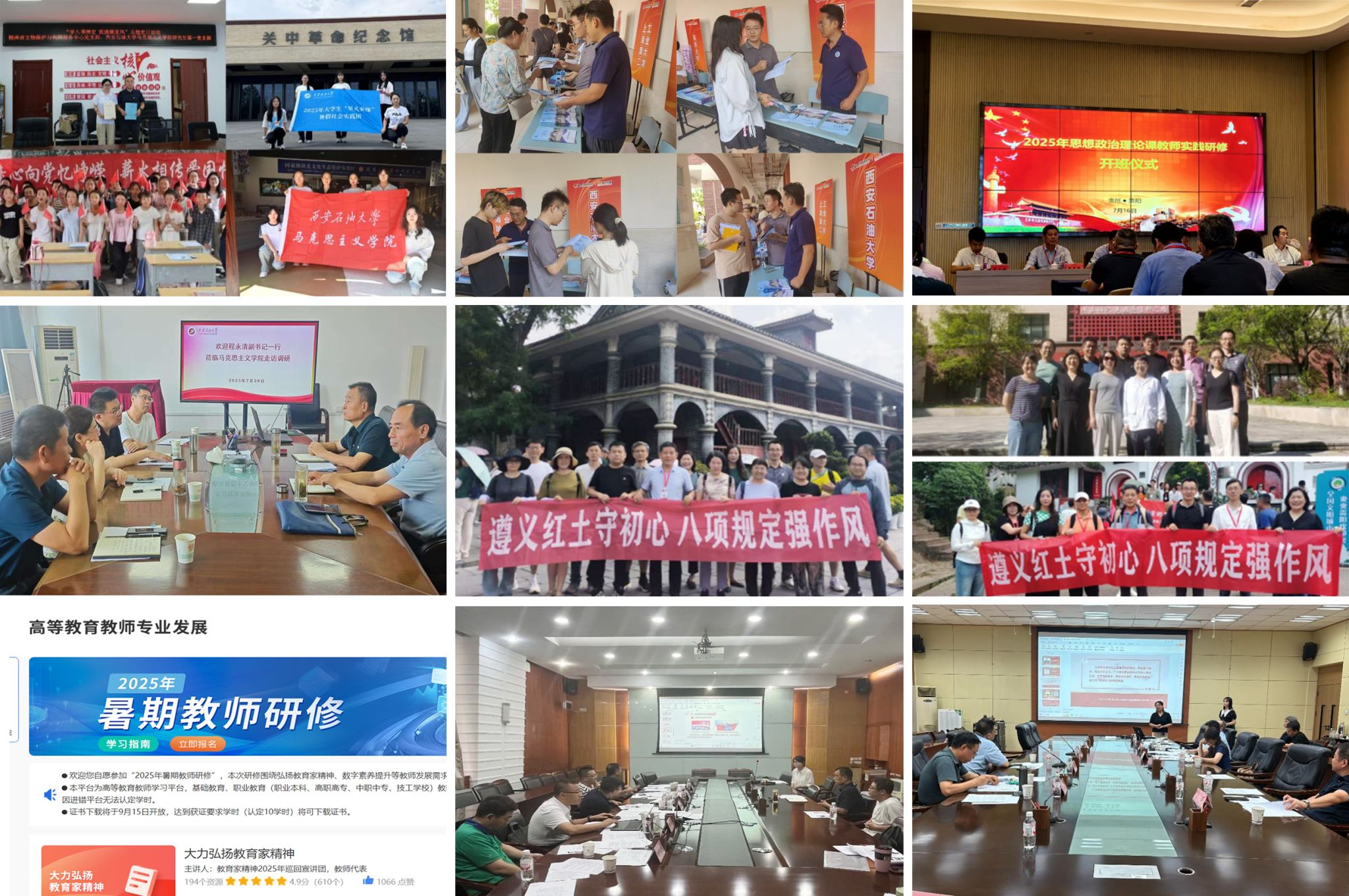 一是實(shí)踐育人強(qiáng)本領(lǐng)。組建6支實(shí)踐團(tuán)隊(duì)赴延安、咸陽、山西朔州等地開展“三下鄉(xiāng)”社會(huì)實(shí)踐活動(dòng);選派3名學(xué)生赴中國石油報(bào)社實(shí)習(xí),助力學(xué)生在實(shí)踐中成長。二是研招宣傳拓生源。組織教師赴上海參加全國研究生招生咨詢會(huì),詳解學(xué)校優(yōu)勢與專業(yè)特色,精準(zhǔn)吸引優(yōu)質(zhì)生源,提升招生質(zhì)量。三是黨建工作提質(zhì)效。落實(shí)深入貫徹中央八項(xiàng)規(guī)定精神學(xué)習(xí)教育工作要求,完善問題臺(tái)賬并推進(jìn)整改;邀請校領(lǐng)導(dǎo)調(diào)研指導(dǎo),鞏固學(xué)習(xí)成果。四是研修培訓(xùn)促提升。組織16名教師赴貴州參加思政課實(shí)踐研修;組織6名教工黨支部書記參加高校基層黨組織示范班線上培訓(xùn),安排10名教師參與“人工智能賦能人才培養(yǎng)”線上培訓(xùn)。五是以賽促教磨真功。組織開展四次思政課教師“大練兵”磨課活動(dòng);舉辦專家講評會(huì),邀請楊云霞等10位知名專家現(xiàn)場指導(dǎo),助力教師提升教學(xué)水平。